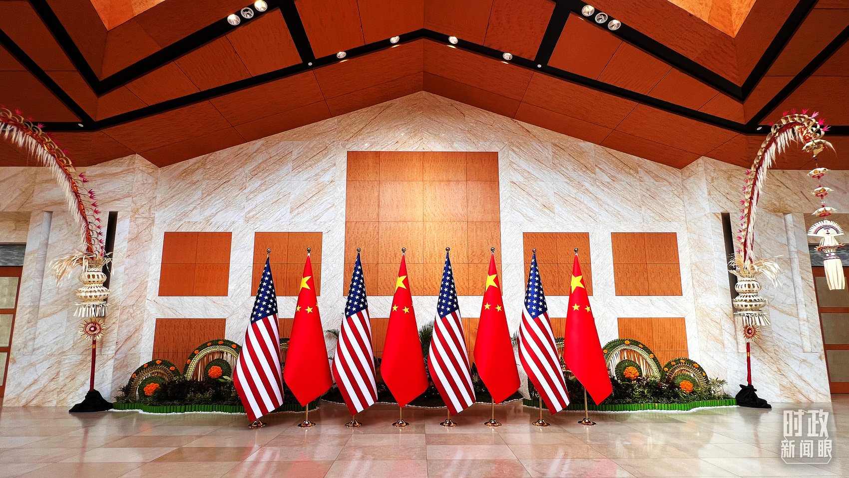 △中美元首会晤开始前的现场。(总台央视记者石丞拍摄)