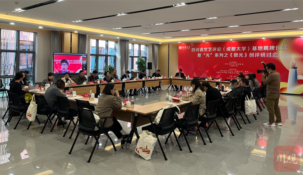 11月16日下午,由四川省文艺评论家协会、成都大学主办的四川省文艺评论(成都大学)基地揭牌仪式暨“光”系列之《微光》创评研讨会在成都大学举行。研讨会上,省内外专家学者通过线上线下相结合的方式,针对红色主题沉浸式戏剧《微光》展开“头脑风暴”。