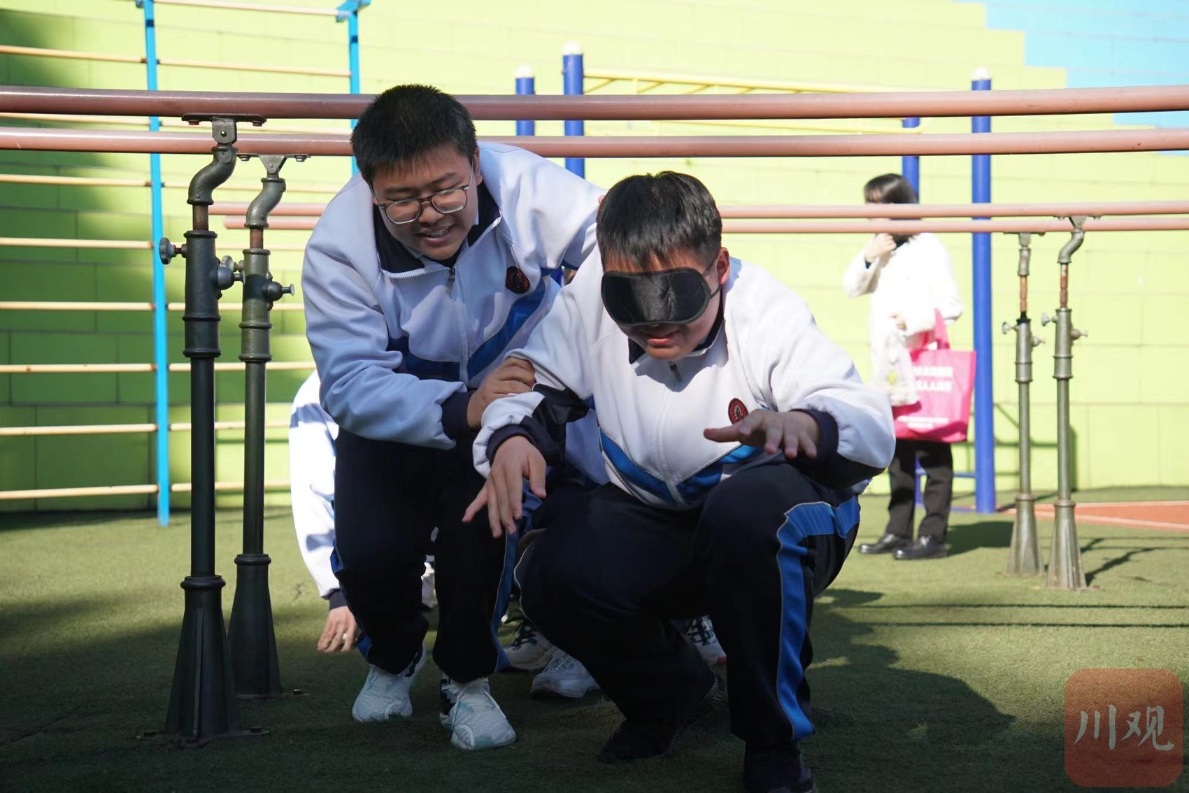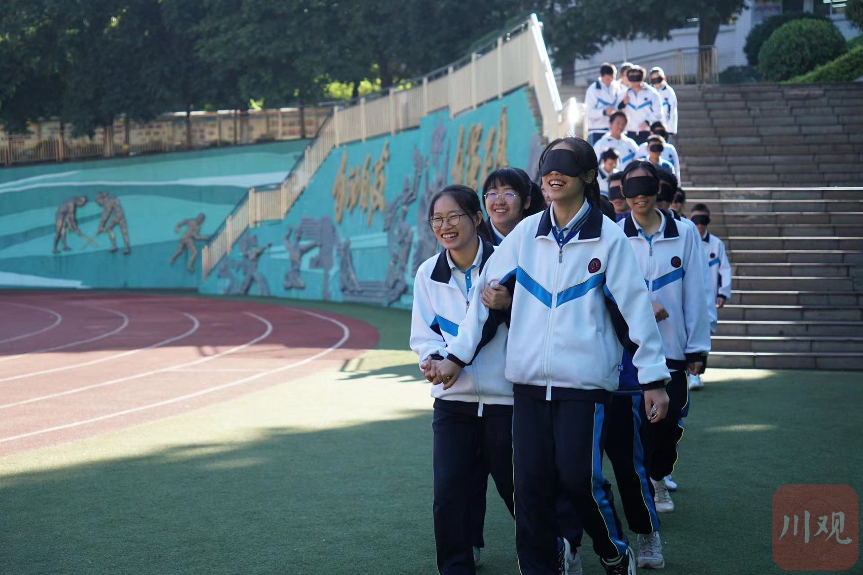 “同学们分为两组,一组扮演拐棍,一组扮演盲人,队友们互相帮助通过前方的障碍物。”11月17日,攀枝花市第七高级中学校(以下简称攀枝花市七中)西城校区的操场上,一周一次的心理健康教育课如约而至。三位心理教师手拿眼罩、便利贴等道具,和同学们进行着“人体拷贝”“信任之旅”“我的名片墙”的游戏,现场一片欢声笑语。