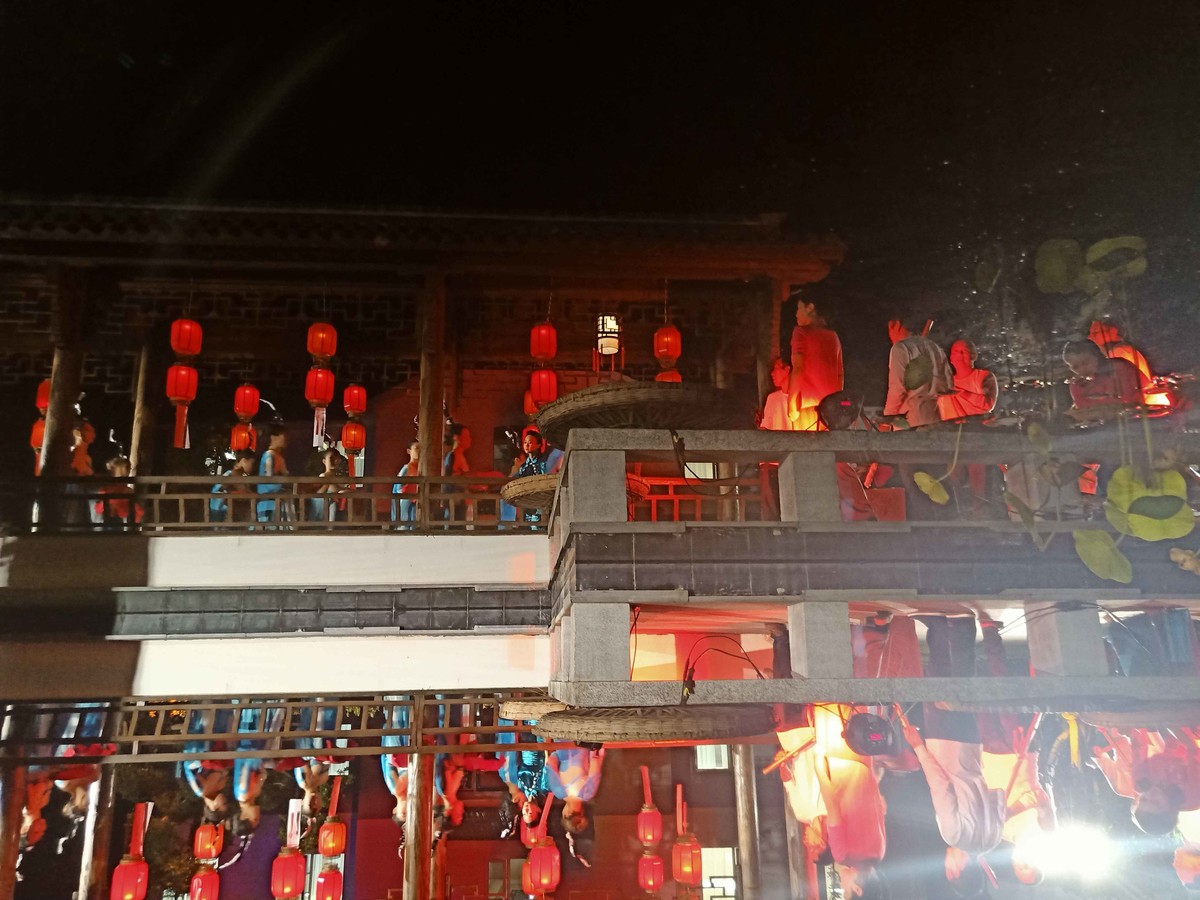 当天晚上,在具有古典气韵的江南水乡风格的亭楼间,一边是“嘿哟、嘿呦”舂糍粑的活跃,一边是主持人带领大家猜灯谜、尝糍粑的恬静,活动就此拉开帷幕。四川省省级非物质文化遗产《云童舞》,只见小演员们转着手中的花灯,各个神采奕奕。女声四重唱《和谐小调》、男声独唱《故乡有话告诉你》、谐剧《雪花飘飘》等10余个特色文艺节目集中展现当地村民一起相约民宿同赏明月、共诵中秋的和美场景,营造迎庆祖国华诞、共享佳节团圆的浓厚氛围。