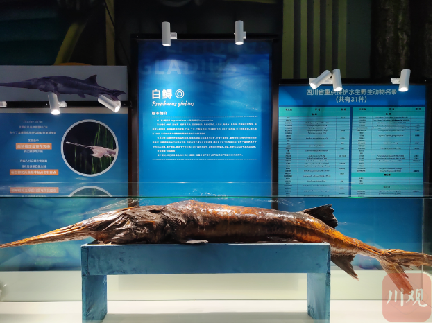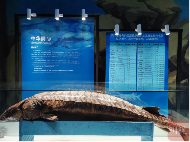 本次专题展为期一个月,分为稳步推进长江“十年禁渔”迈向新台阶、强化水生生物资源养护、全面推进川鱼产业发展、美味营养的水产品共4个展览单元,展出长江生物标本近百件,包括白鲟、中华鲟、长江鲟、川陕哲罗鲑等多种国家一级重点保护水生野生动物,以及圆口铜鱼、厚唇裸重唇鱼、胭脂鱼等多种国家二级重点保护水生野生动物。