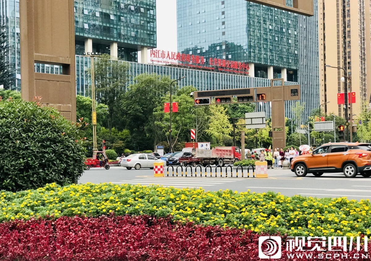 此外,有细心的市民发现,内江万达广场2号门外的渠化岛也已布满了鲜花,让人满心愉悦。“目前道路的鲜花摆放工作已经于上周末完成,大洲公园、清溪湿地公园的植物景点制作也将在国庆节前完成。”记者从内江市城市园林绿化建设管护中心了解到,内江城区鲜花摆放点位有10余个,主要分布在内江站高速路入口花箱、部分主干道上的渠化岛、西林大桥南转盘、省道206线道路节点等,鲜花有国庆菊、一串红、千鸟花、孔雀草、石竹等10多个品种共约15万盆。
