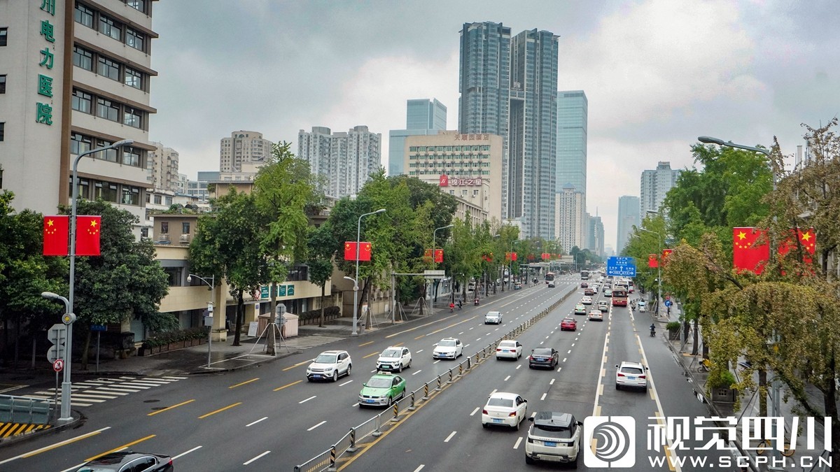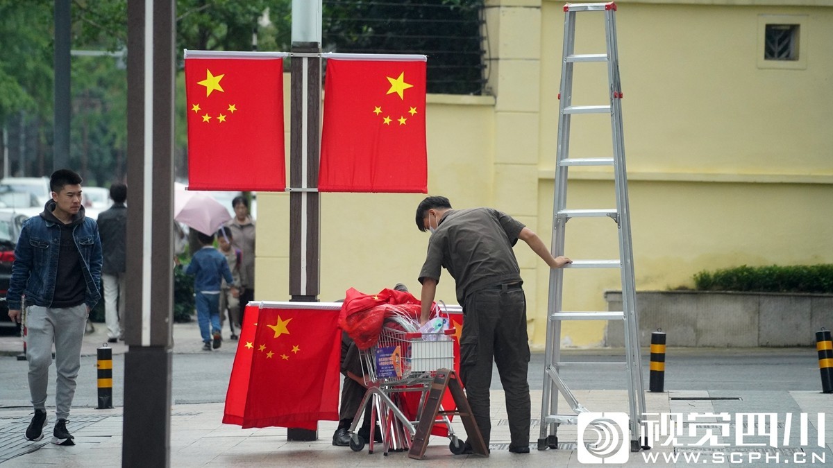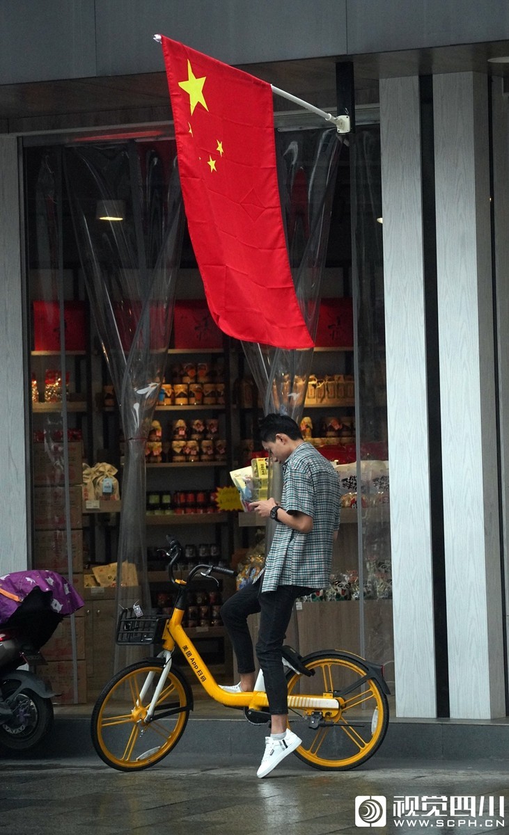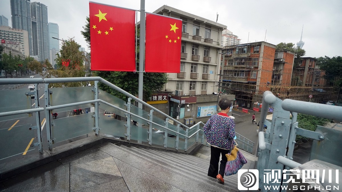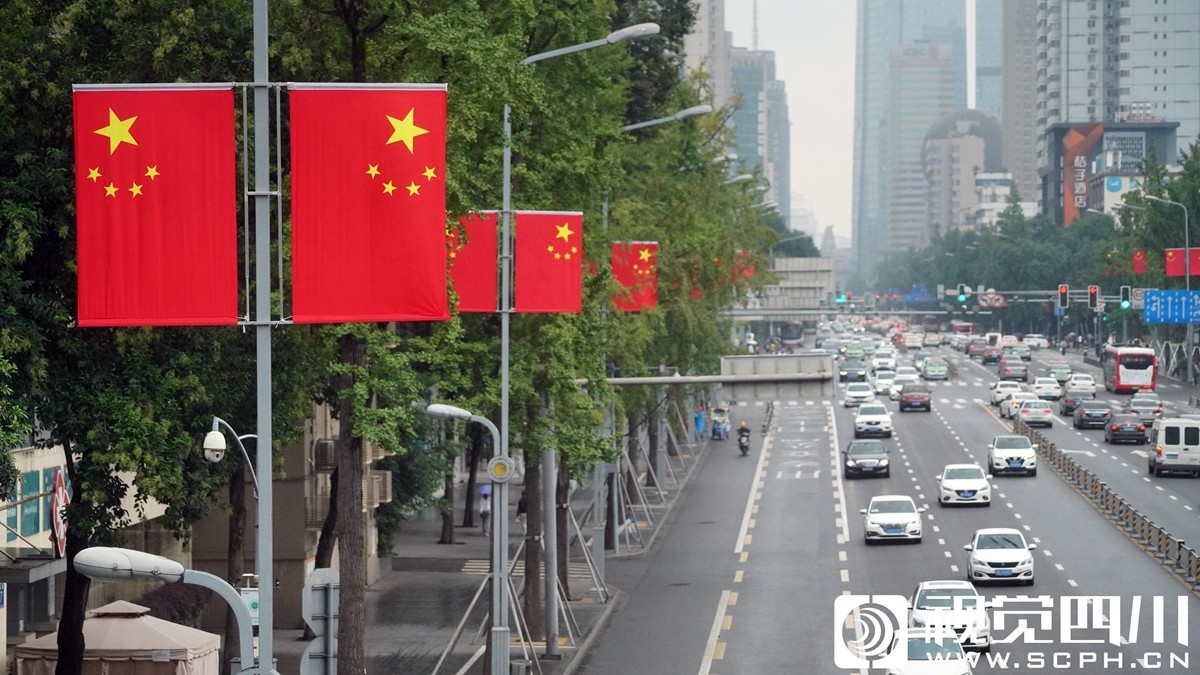 9月26日,在成都记者发现身边熟悉的街道正悄悄发生着变化,不少地方飘扬起鲜艳的五星红旗,为即将到来的新中国成立71周年国庆营造了浓浓的节日气氛。整齐悬挂的五星红旗,用一抹“中国红”闪耀了成都大街小巷。