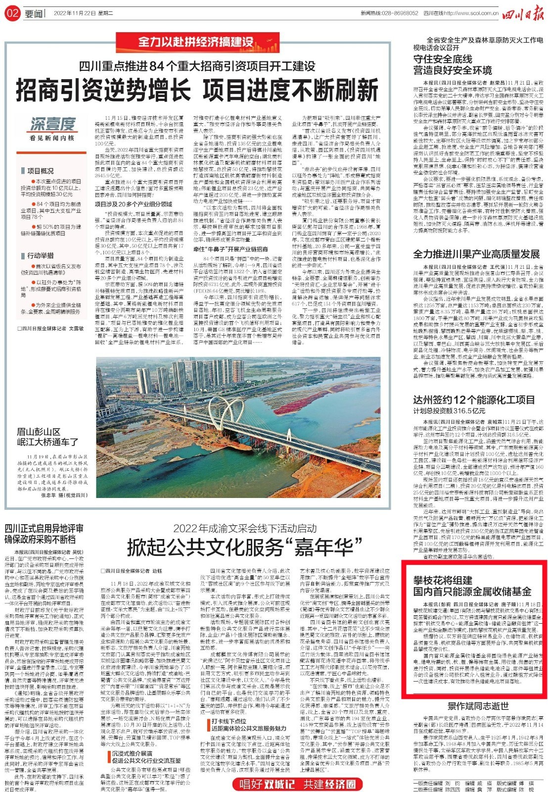 11月18日,攀枝花城建交通(集团)有限公司与攀枝花钒钛交易中心有限公司签署战略合作协议,双方将组建国内首只能源金属收储基金,探索“钒钛交易中心+能源金属收储+储能设备融资租赁”这一全新产业和金融运作模式,推动攀枝花钒钛产业高质量发展。