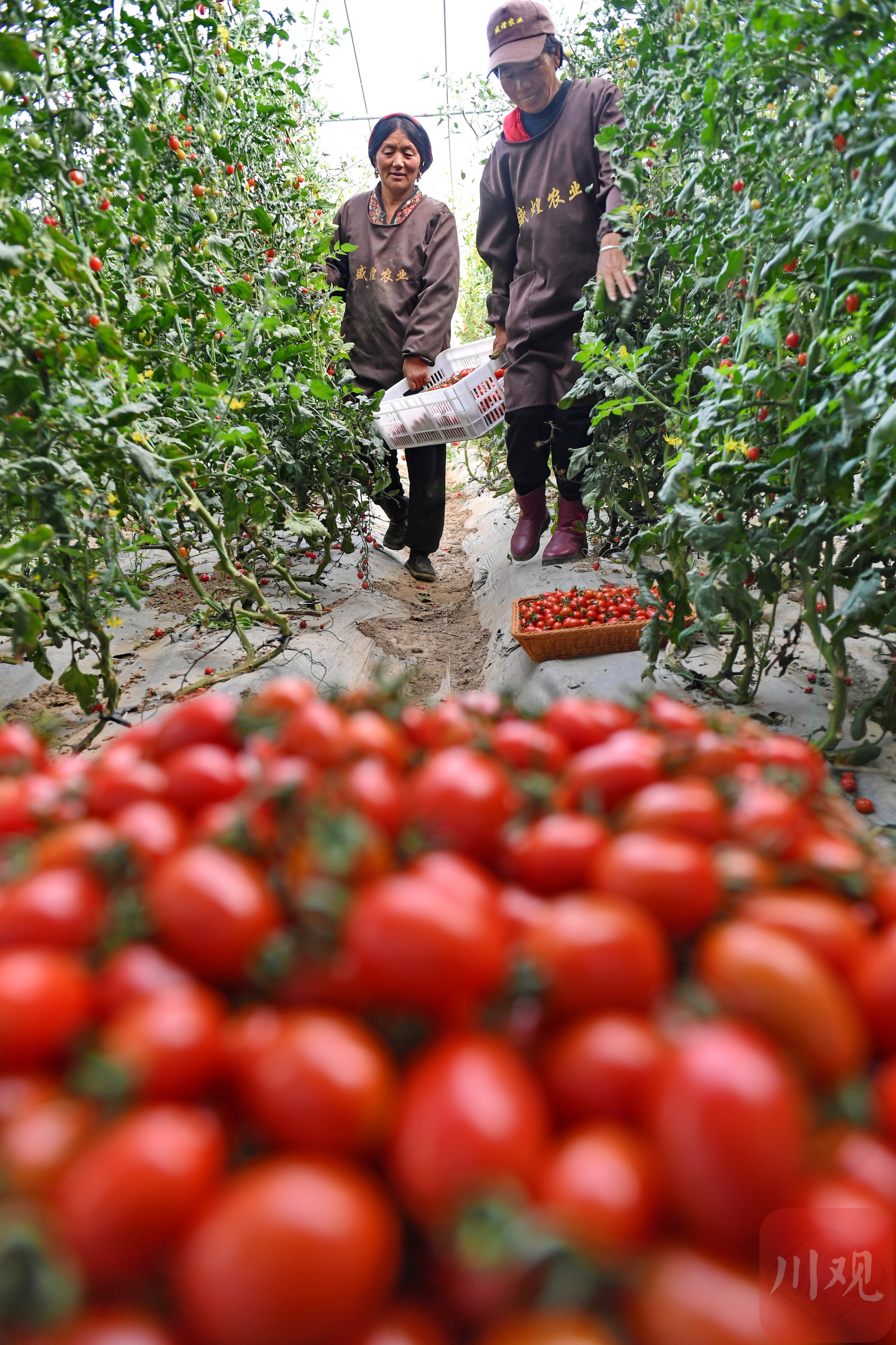 11月21日,在位于海拔3200米的甘孜州炉霍县虾拉沱镇高原生态农业产业园区里,当地工人正在忙碌采摘成熟的番茄,这批番茄将销往成都、重庆、贵州等地。