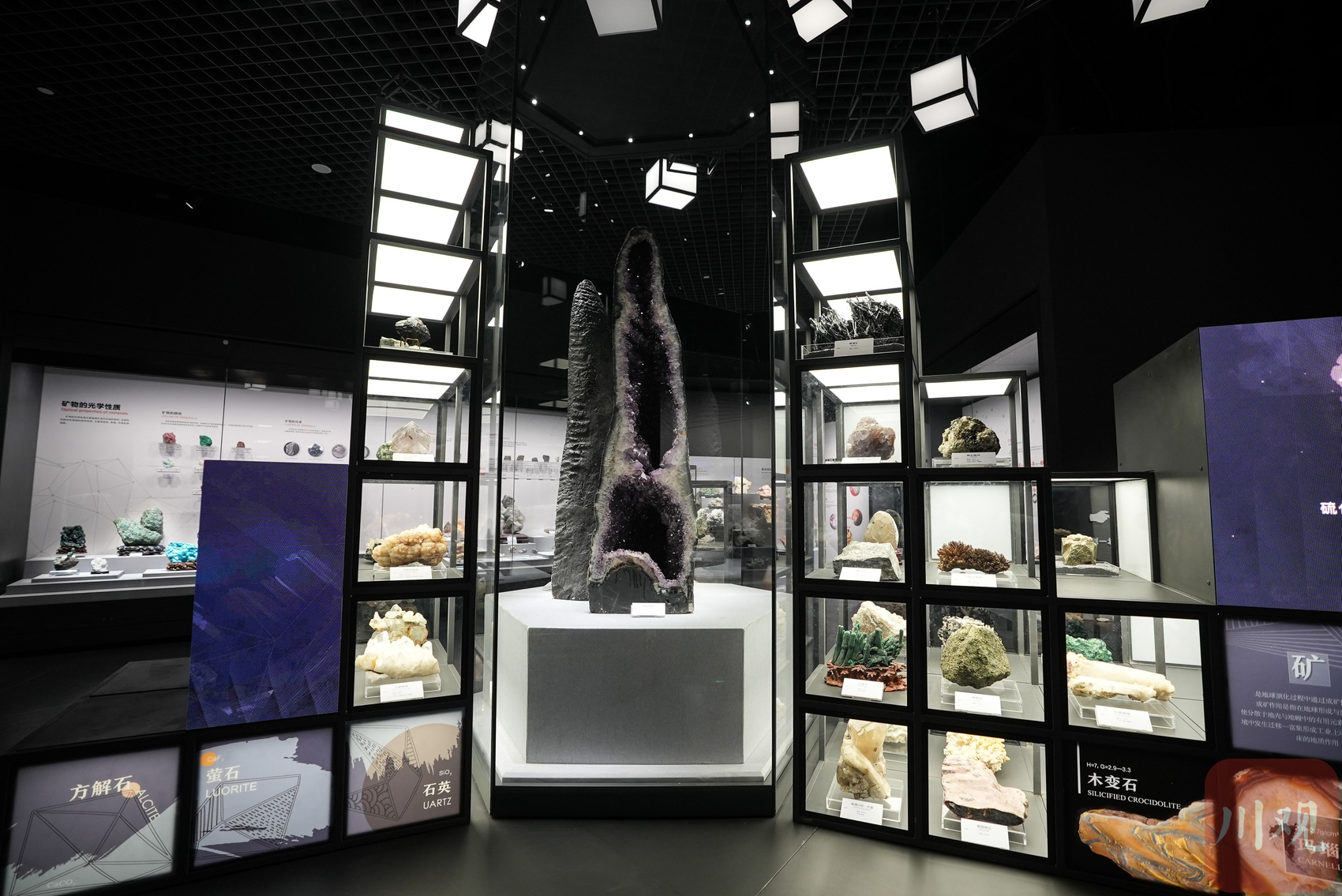 “矿产资源厅”满是色彩丰富的矿物、形态各异的矿产、璀璨夺目的宝石标本。