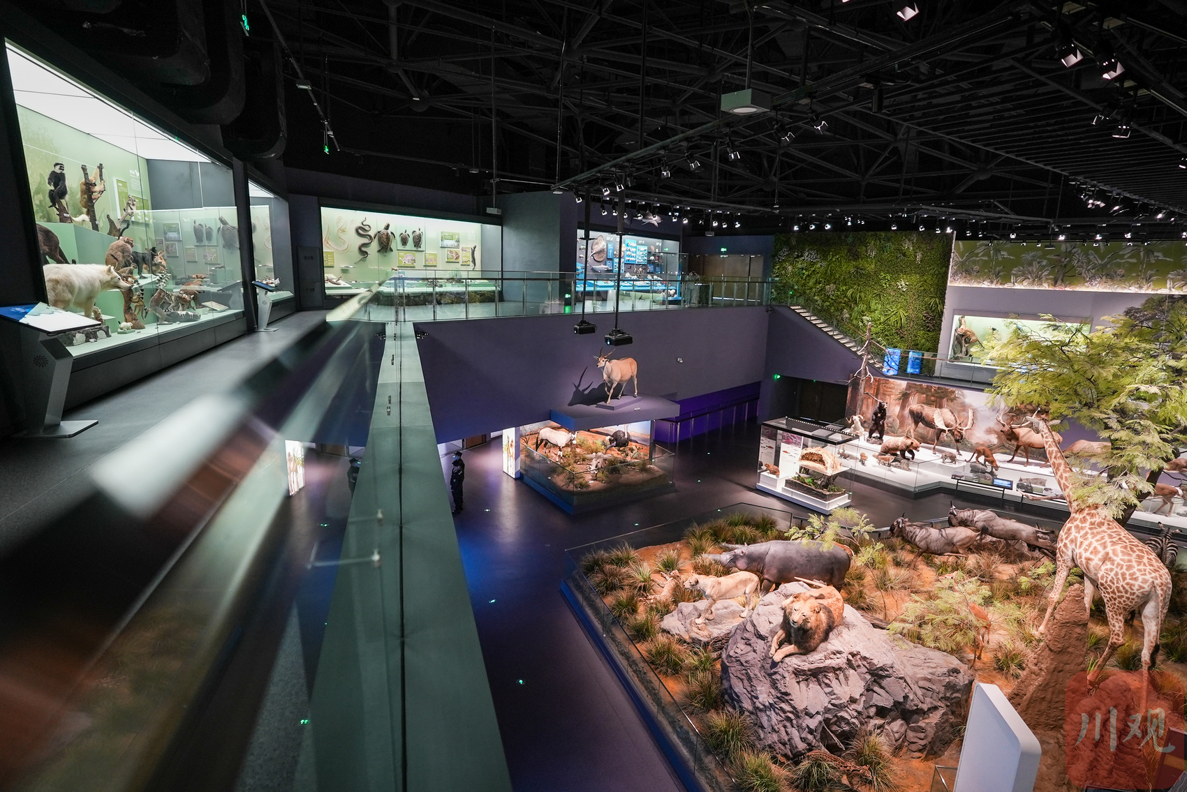 “缤纷生命厅”内逼真的自然标本展现了众多现代生物以及与人类息息相关的生态系统。