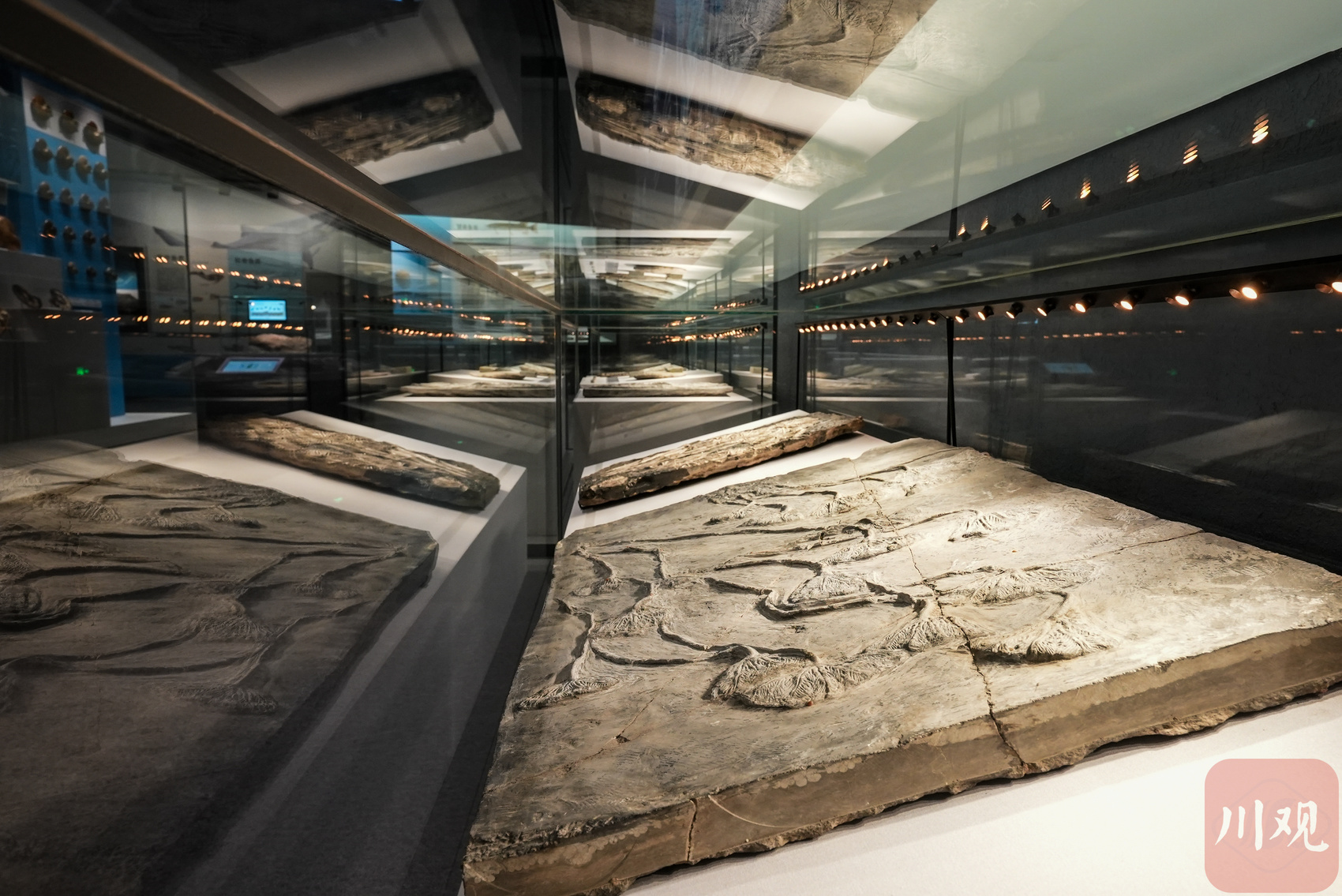“生命探源展厅”集中展示的古生物化石标本。