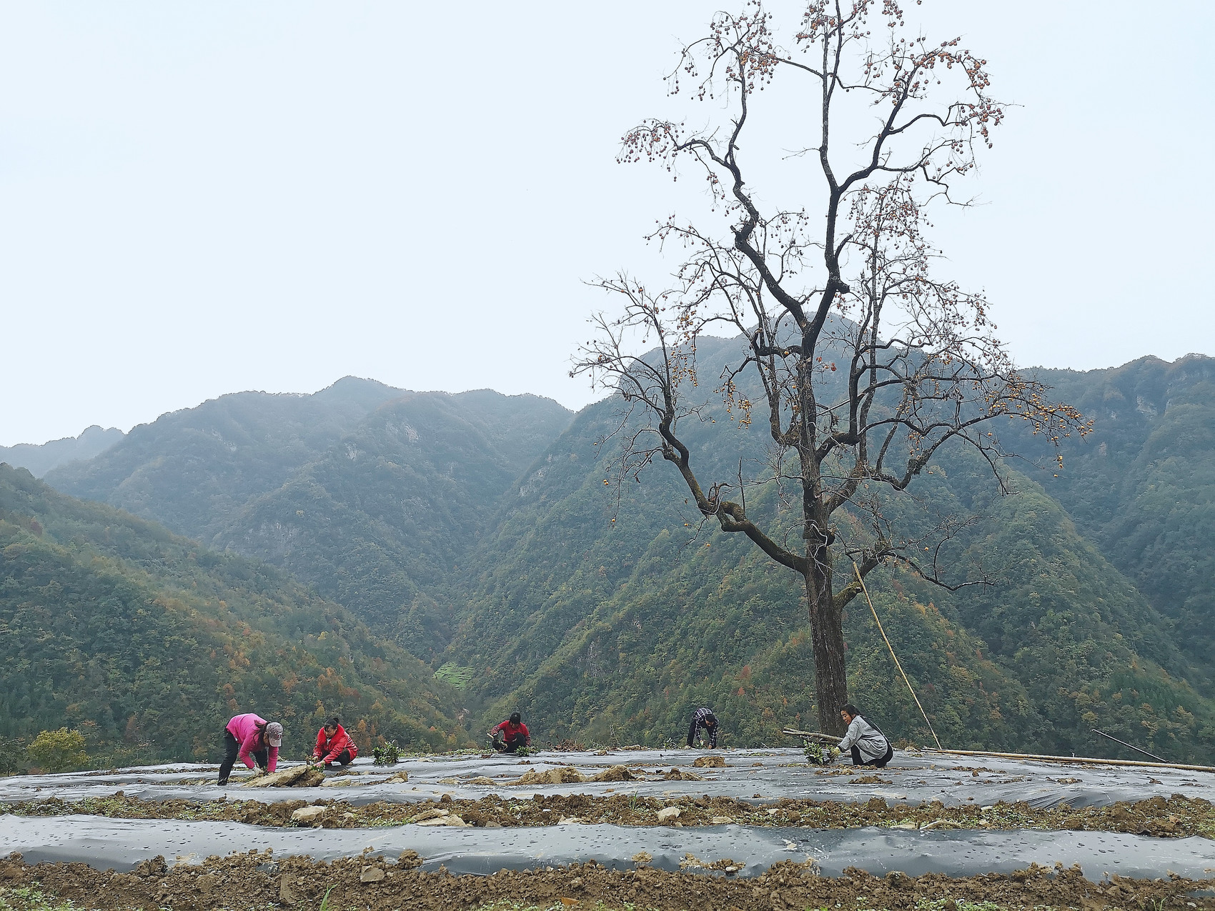 青川县骑马乡水磨村村民正在栽种“白叶一号”茶苗。胡明军 摄