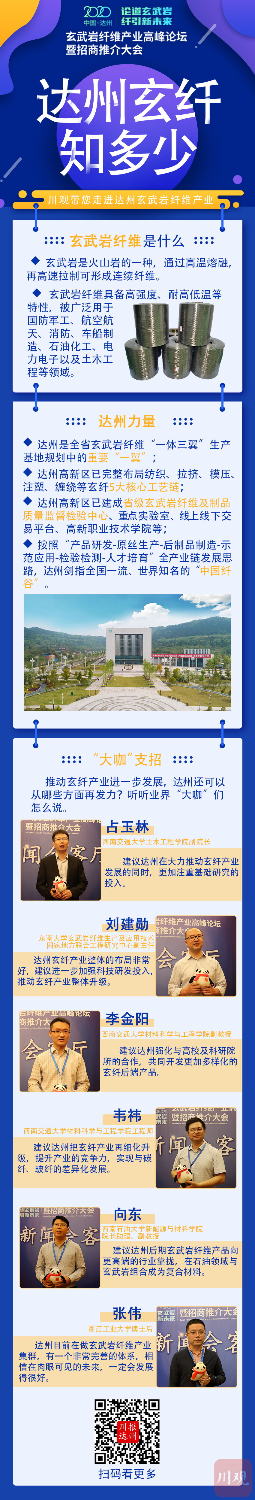 作为我省玄武岩纤维产业“一体三翼”版图上重要“一翼”,达州高新区规划了6000亩的玄纤产业园,目前已相继入驻10余家从事玄纤及后制品生产研发企业,建成纤模压、缠绕、拉挤、纺织、注塑等五大工艺的全产业链布局,全力实现“原料在达州生产、技术在达州研发、成果在达州转化”。