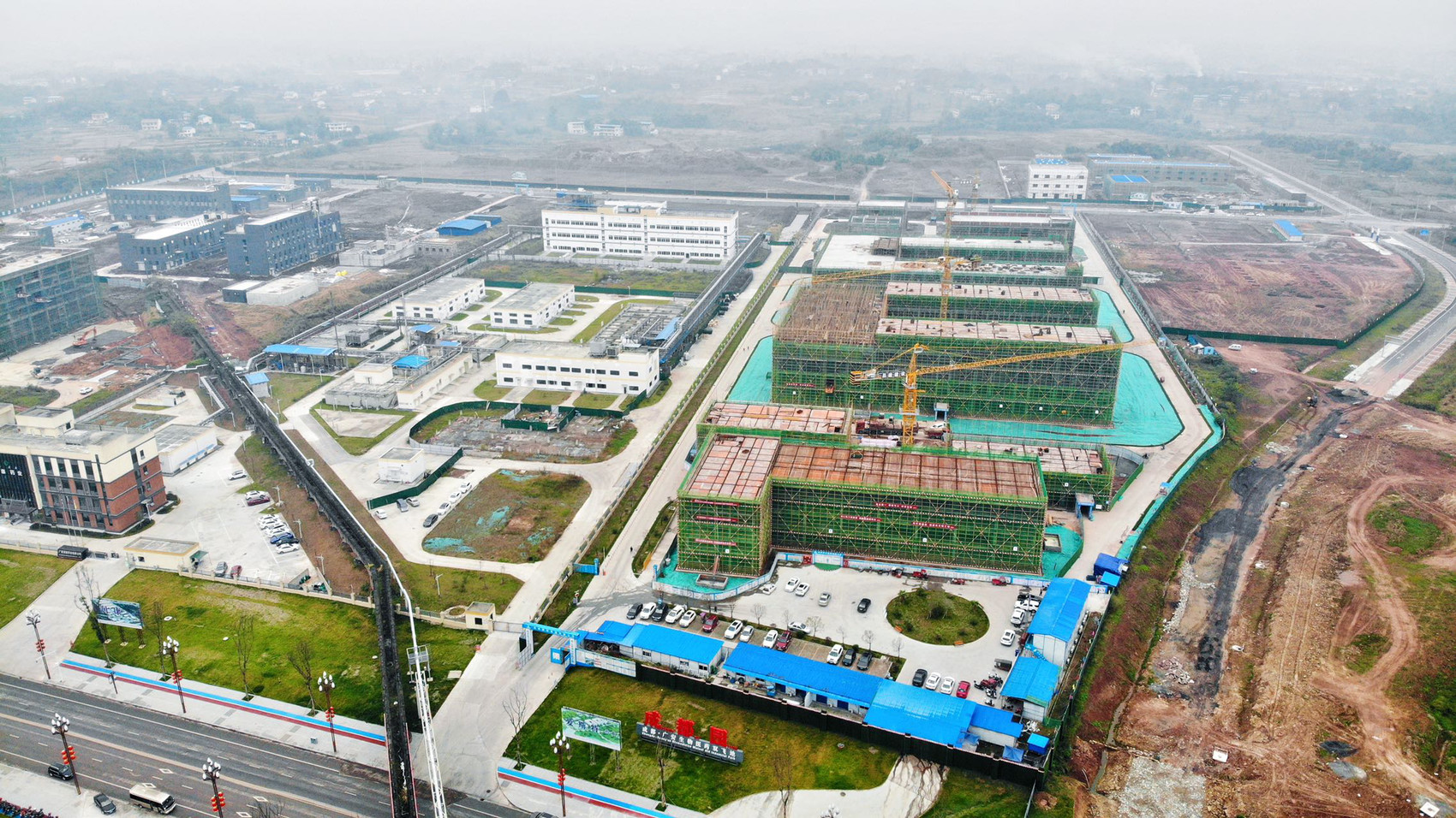航拍正在建设的广安爱斯特药业有限公司项目施工现场。 吴迪 摄