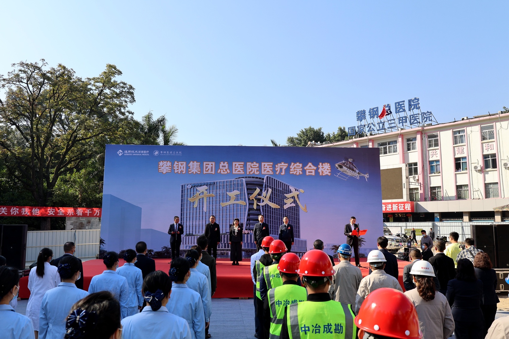 掌声响起,培土奠基。11月25日,通用技术环球医疗攀钢总医院(以下简称攀钢总医院)医疗综合楼开工奠基仪式在该院密地院区举行,将进一步改善就医环境、优化就医流程、提升患者就医体验,助力区域医疗健康中心建设。
