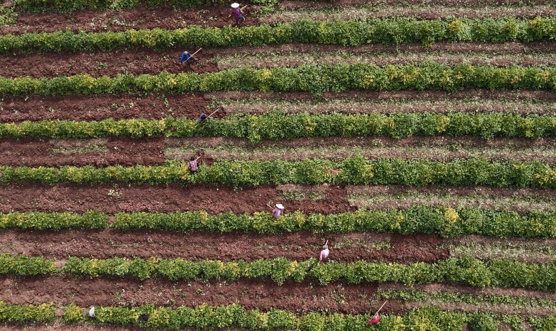 土地撂荒后,地力有所下降,而这里的复耕地为何能增产?524红苕基地“破题”的高招即是套作和良种。唱龙村的524红苕产业基地采取了红苕间作大豆的模式,提前留好行距,5月下旬插薯,6月点播夏大豆。