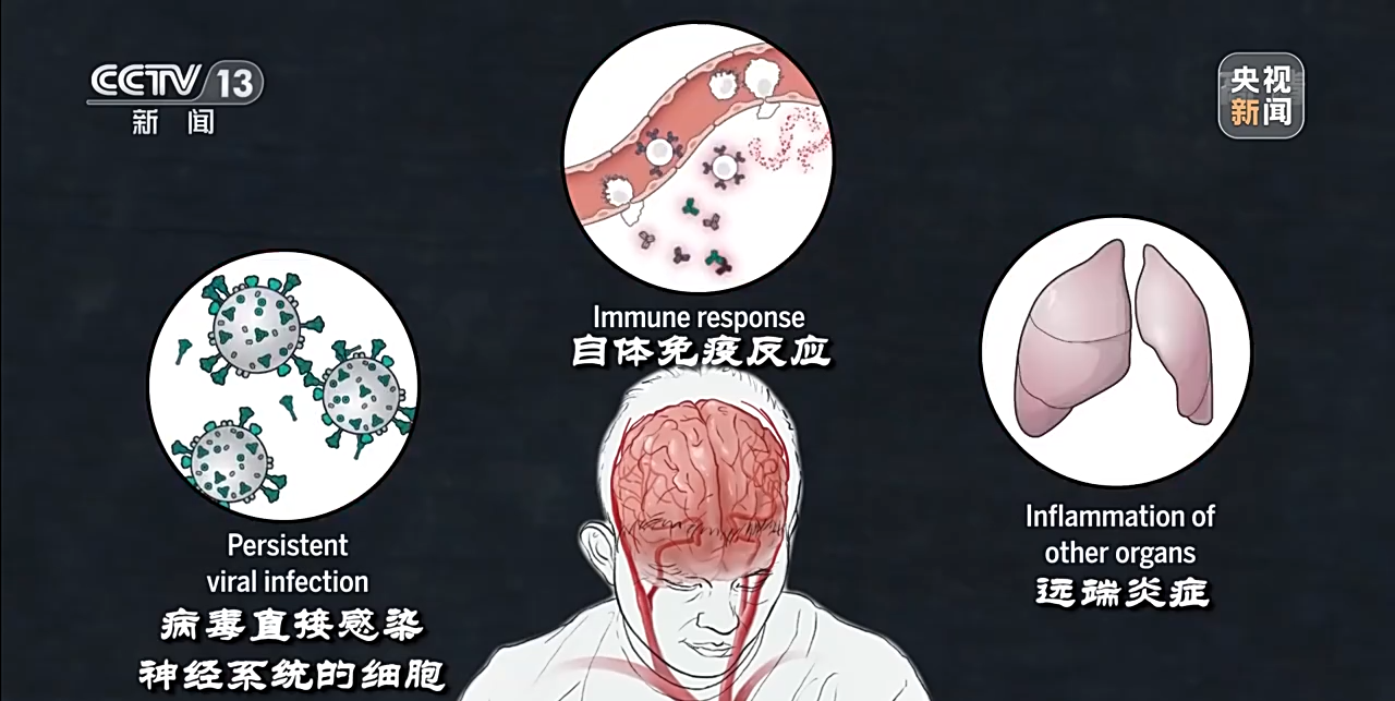 第一种是病毒直接感染神经系统的细胞。第二种是人体的“自体免疫反应”对部分大脑细胞产生作用,在这种情况下,可能出现多种不同的症状。而一旦自体免疫细胞被激活,便很难再被关闭。第三种则可能是远端炎症,如肺部炎症对脑细胞的刺激,引发脑细胞的长期性变化。此外,三种入侵方式也可能同时发生,还可能先后发生,但最终都会导致神经系统的异常。