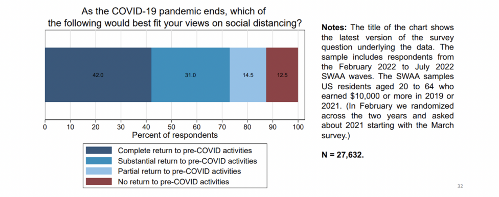 今年10月,胡佛研究所发布“长期社交疏离”的研究报告显示,仅有42%的受访者表示,他们能够完全回到疫情前的活动状态。