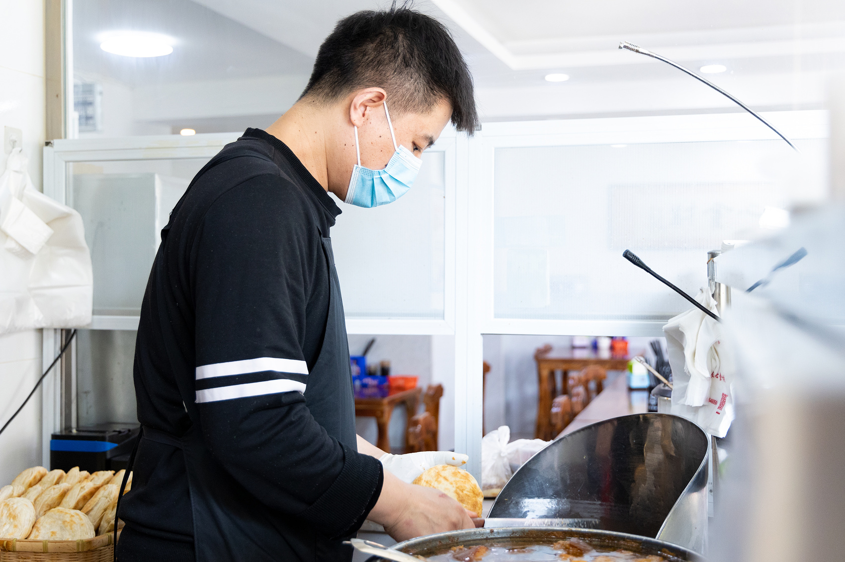 “从没有做餐饮的经验,刚开始想试试水,推着小摊在接街边销售,风吹日晒,还是吃了不少苦。”让任建新颇感意外的是,他制作的老潼关肉夹馍颇受内江人的喜爱,生意越来越好。之后,小摊换成了小店面,最终于去年10月在大千园对面租下了120多平方米的店铺。即便内江师范学院搬迁到了新校区,生意也受影响不大,来吃的老顾客居多,老带新、新带新,是大千路上小有名气的美食店了。