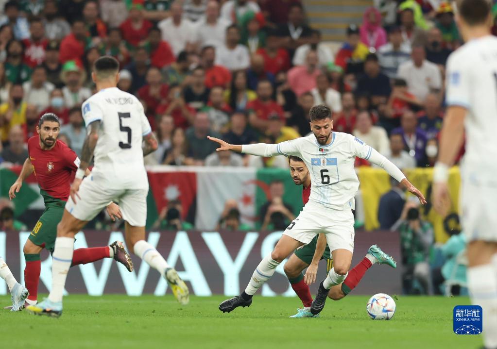 11月28日,乌拉圭队球员罗德里戈·本坦库尔(右)在比赛中。新华社记者 潘昱龙 摄