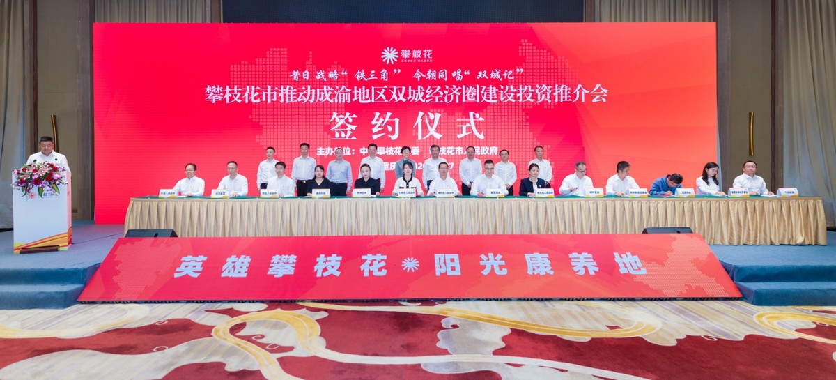 此外,攀枝花推动成渝地区双城经济圈建设投资推介会成功举办,会上,协议总金额56亿元的7个产业项目和协议总金额7.07亿元的7个经贸协议在现场集中签约。