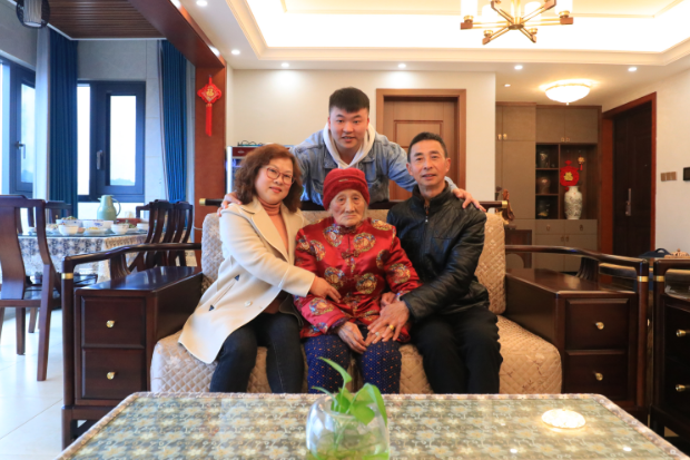 常年耳濡目染下,杨洁慧的儿子黄浩宇也经常陪着妈妈一起照顾奶奶,工作之余,黄浩宇会陪奶奶说说话、唠唠嗑,尽到孙辈的责任,在一家人的悉心照顾下,杨洁慧婆婆健康地跨过了期颐之年。一家其乐融融的和美氛围惹人羡慕。