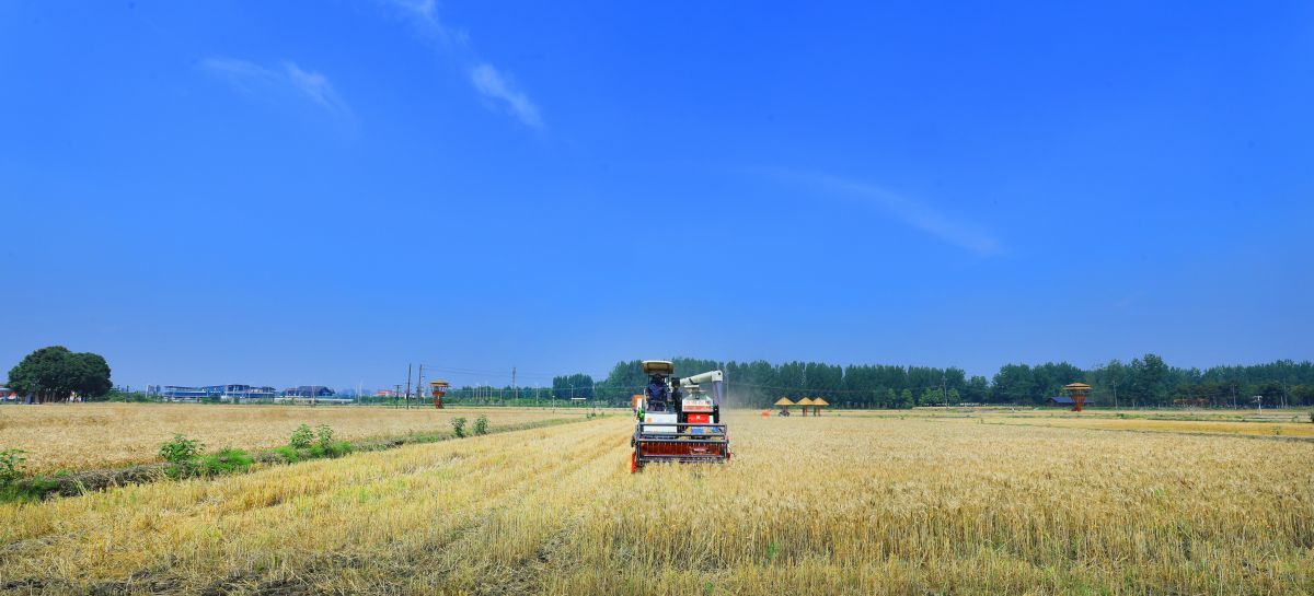 ▲2022年5月,全环一万余亩冬小麦收割现场。