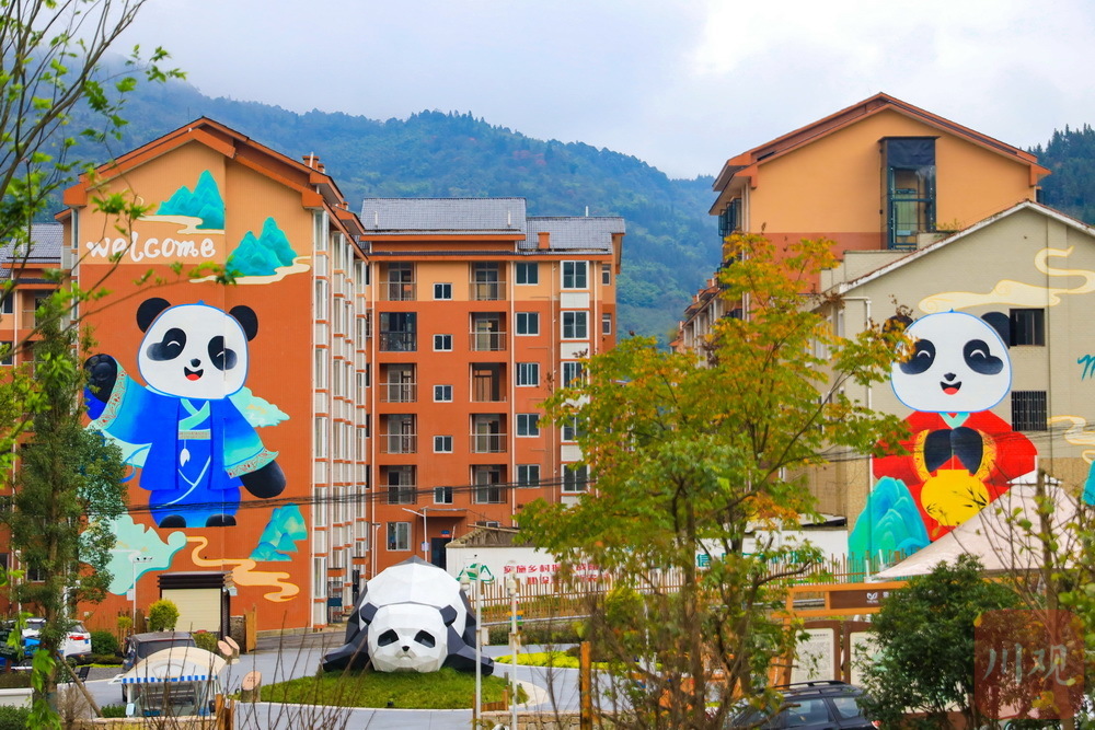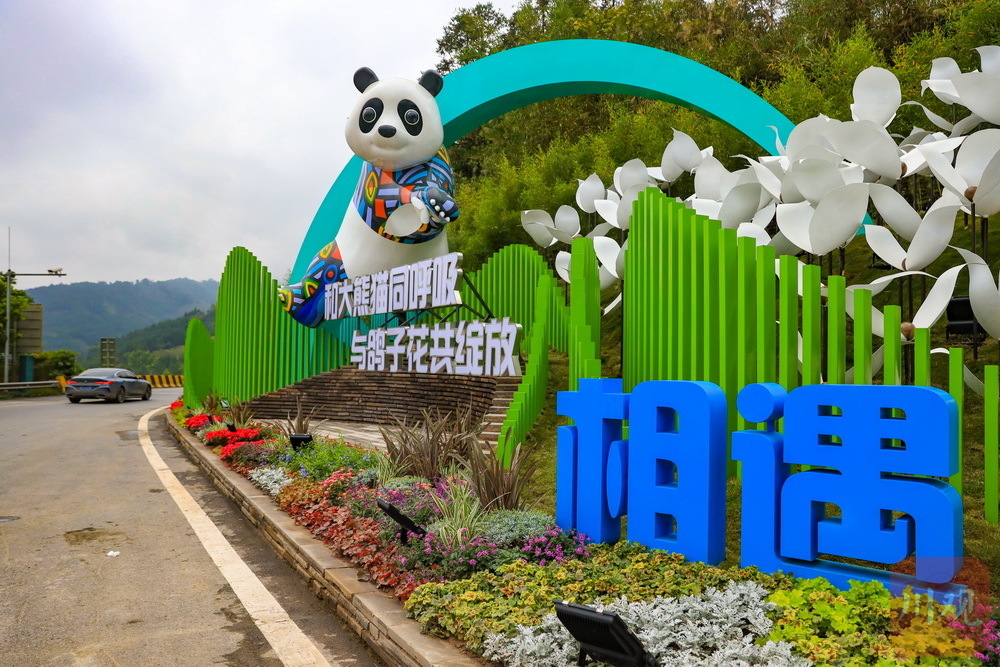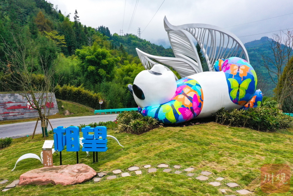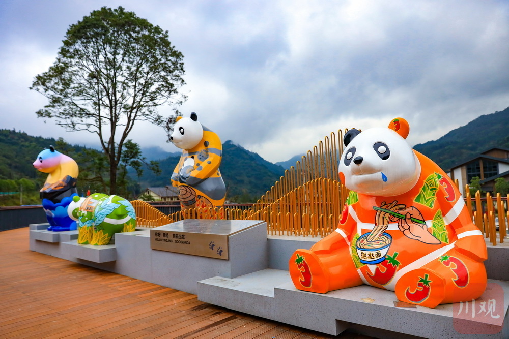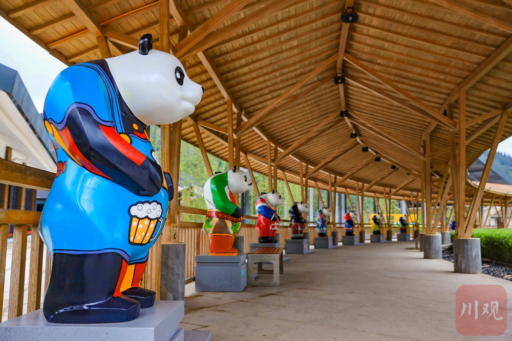 “相遇”、“相守”、“相望”……当你走进雅安荥经县龙苍沟镇,已成为“貊貊走廊”的熊猫翠竹长廊旁,随处可见憨态可掬的大熊猫雕塑,仿佛进入“胖墩儿”的童话世界。