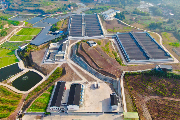 俯瞰位于市中区永安镇的60万头生态内江黑猪农牧循环产业园
