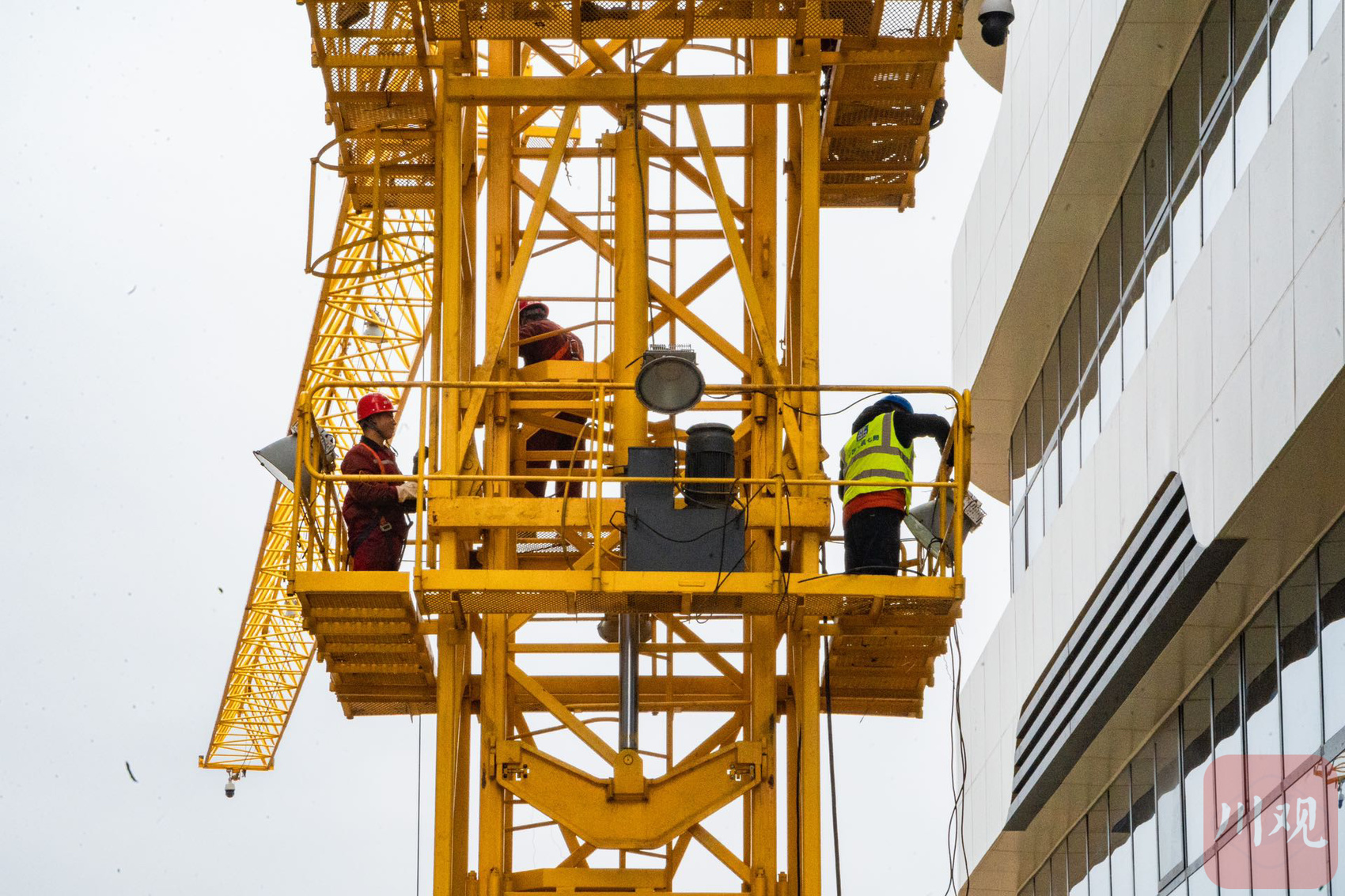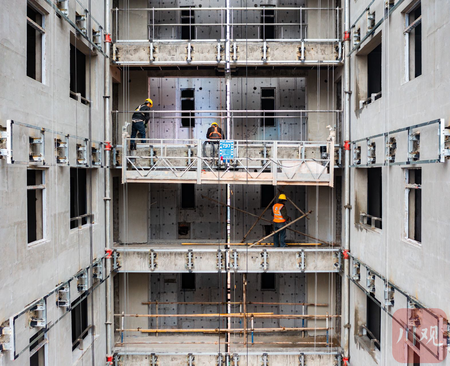 穿梭在高楼中的施工工人