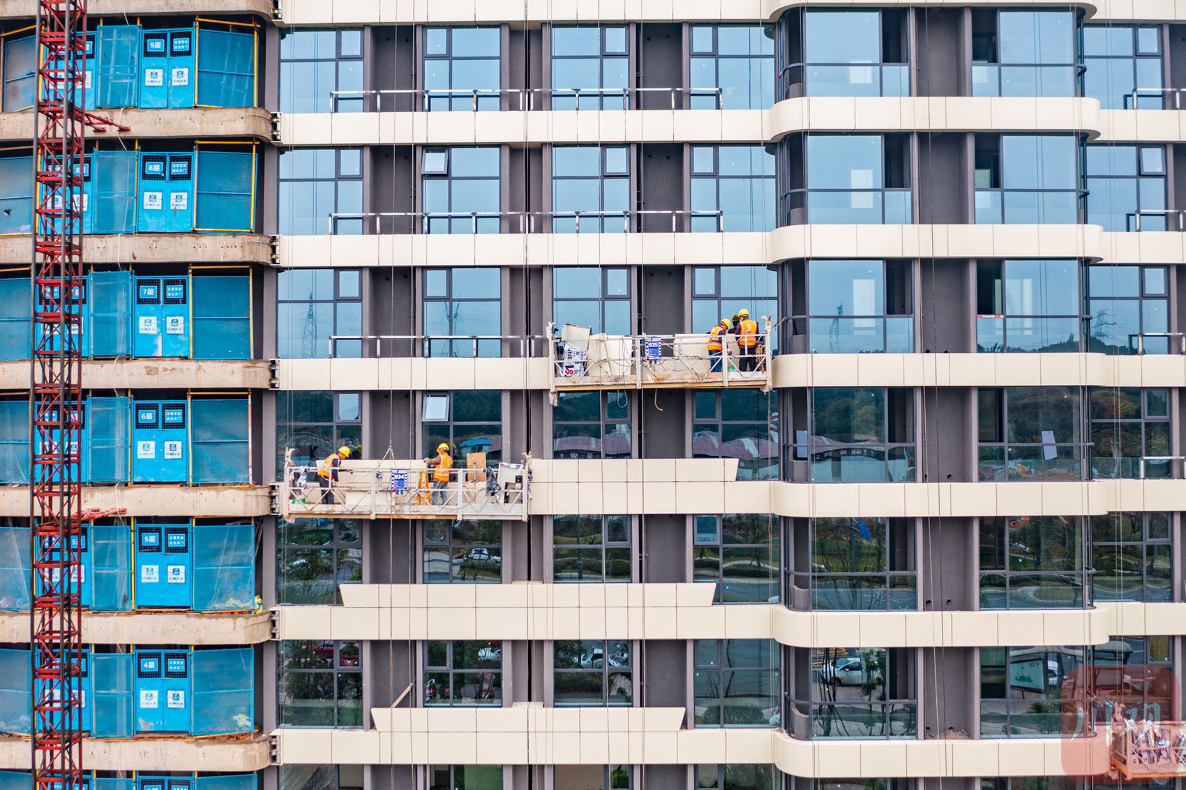 工人正在进行外墙作业