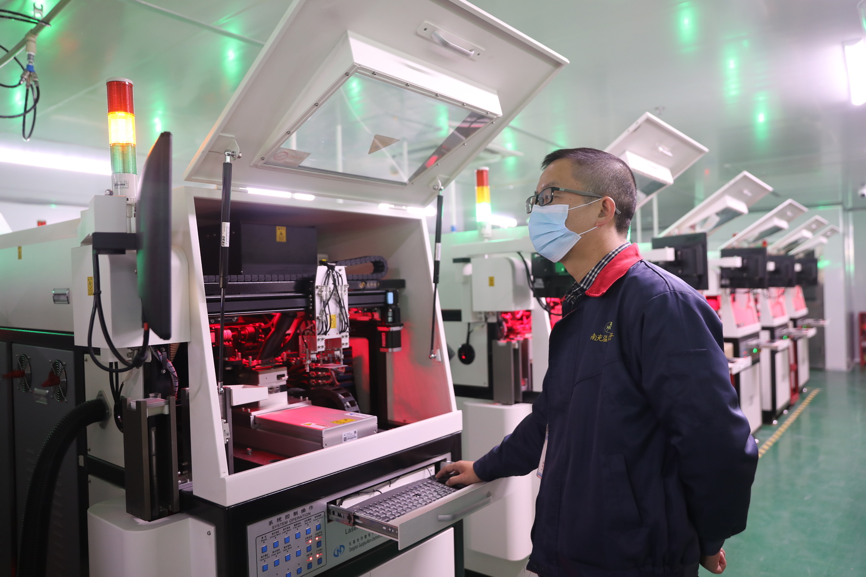 位于临江新区高坪片区的南充溢辉电子科技有限公司内,技术人员正调试机器。 杨波 摄