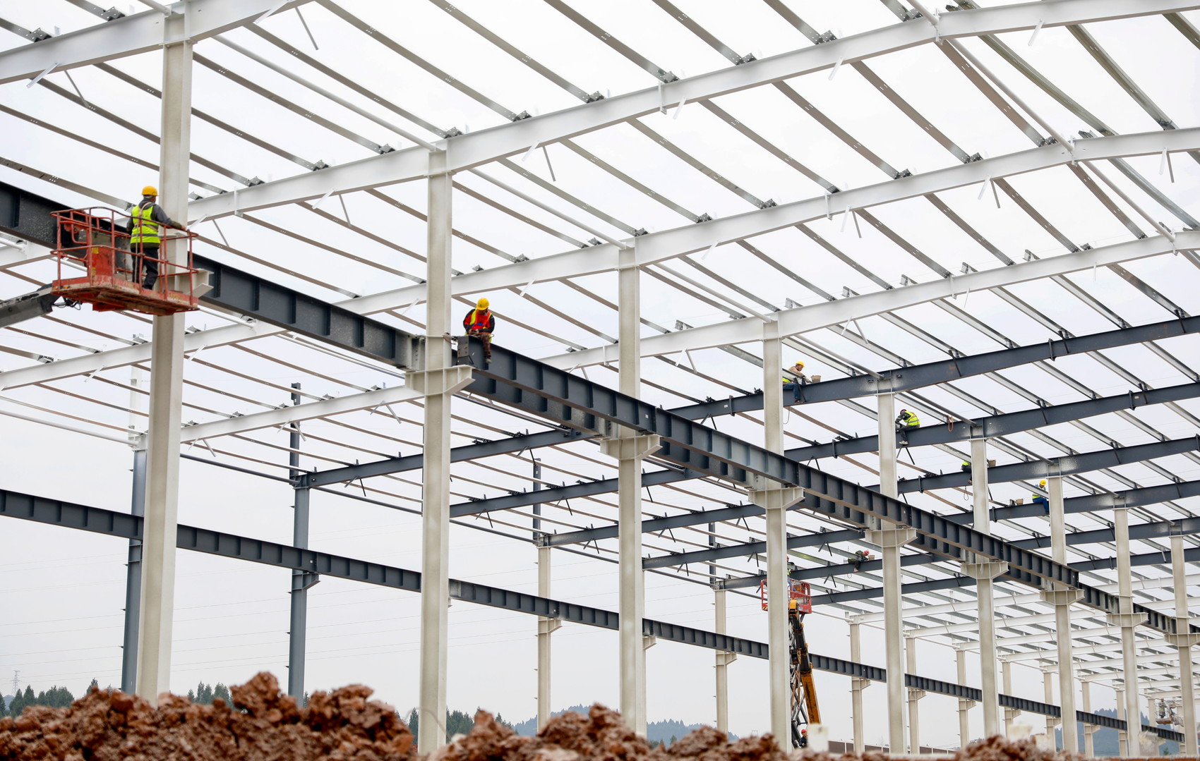 11月18日,在临江新区中景航天高端装备智能制造项目施工现场,工人们正在建设厂房。黎涛 摄