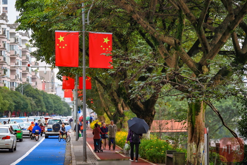 随着国庆节的临近,雅安大街小巷也都陆续披上了节日盛装,不少地方飘扬起鲜艳的五星红旗,为即将到来的新中国成立71周年国庆营造了浓浓的节日气氛。特别是城区主干道上陆续悬挂的五星红旗,让市民提前感受到了浓浓的喜庆氛围。