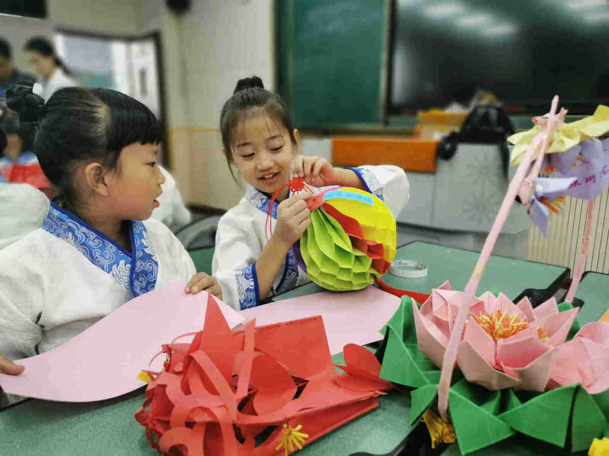 除了传承市级非遗文化王应新折纸艺术,学校还以猜灯谜、现场书法、古诗吟诵、讲解习俗等多种方式,让学生更加深入地了解中秋节这一国家级非遗文化的内在精髓,传承中华民族优秀传统文化。