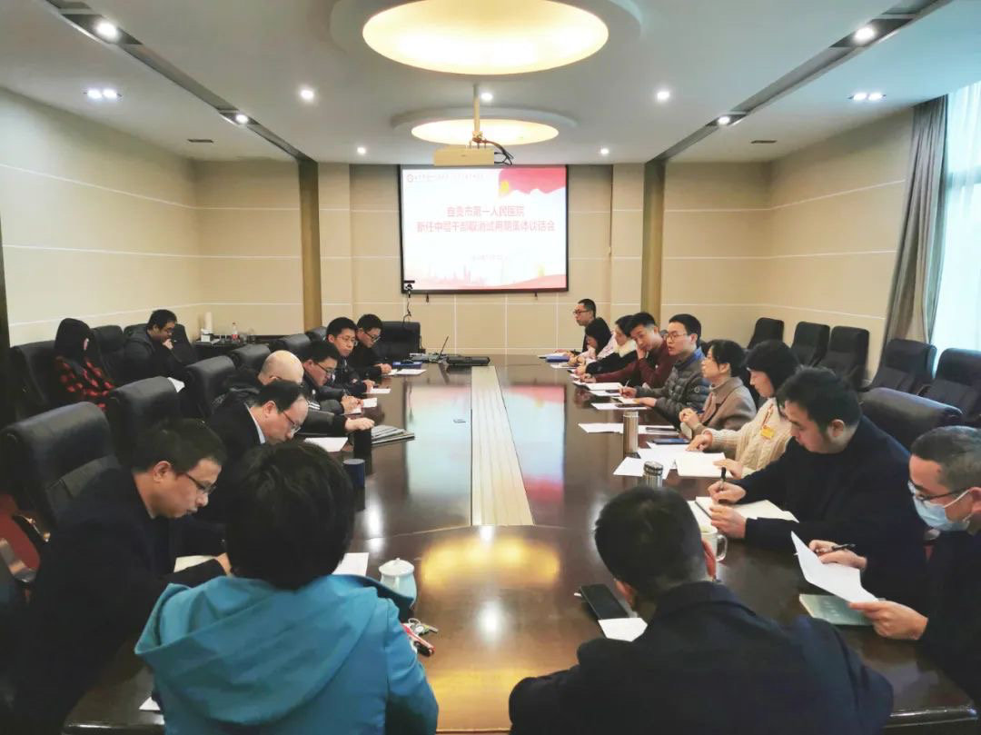 近日,自贡市第一人民医院召开新任中层干部试用期满考核集体谈话会。27名新任中层干部依次就自身一年试用期工作的心得体会、工作亮点、存在问题和下一步打算进行汇报。会议由党委书记姜晓燕主持,该院领导班子成员参加会议。