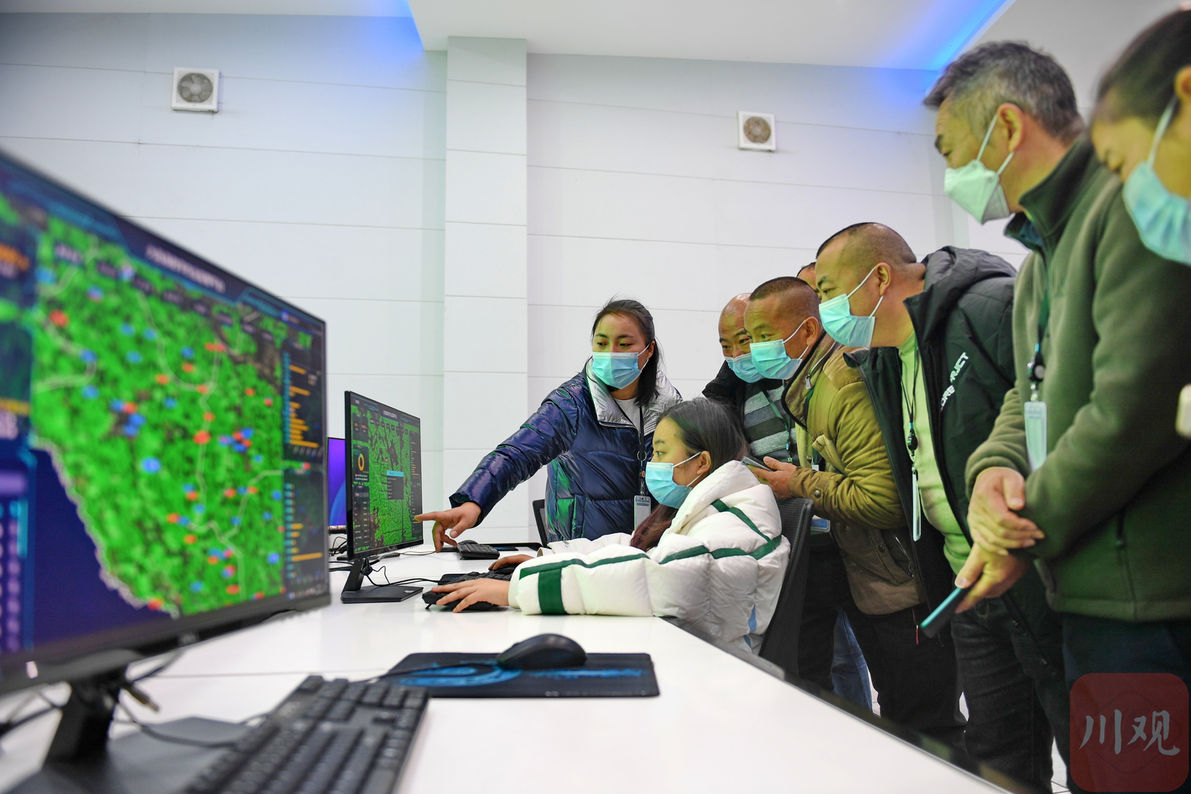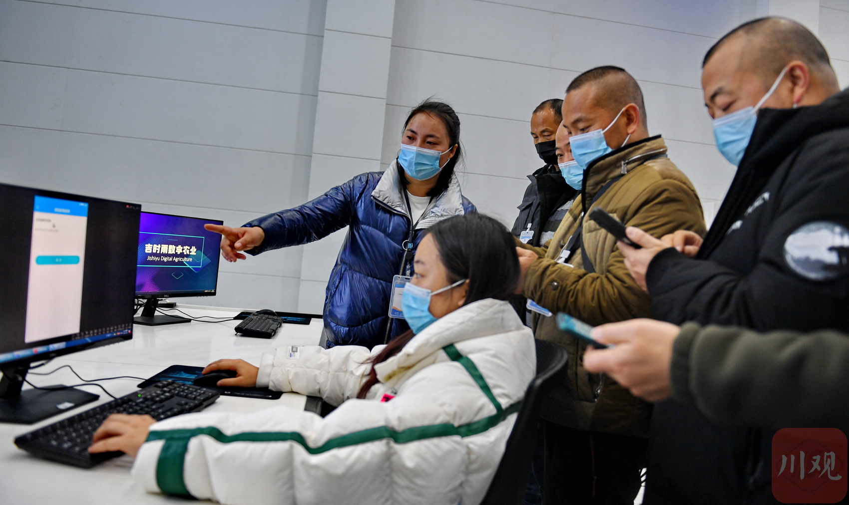 12月8日,在成都市大邑县智慧农业园区,当地村民在老师的指导下学习远程施肥、浇水等数字化农业管理技术。这是由大邑县农业农村局主办的“2022年高素质农民培训”。