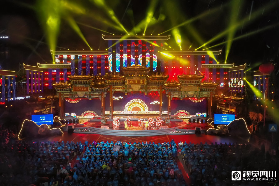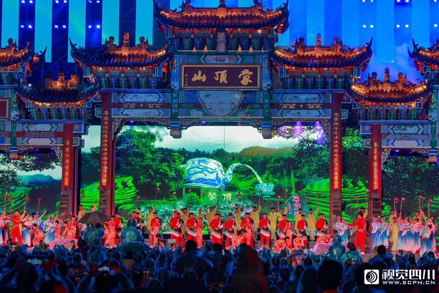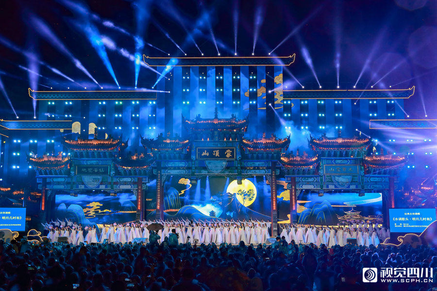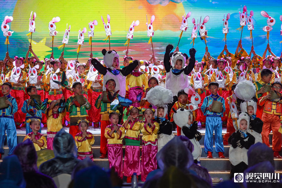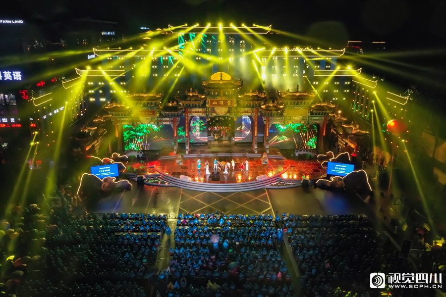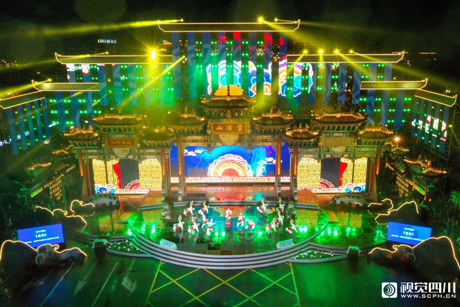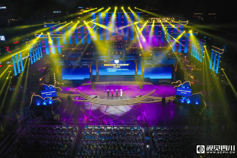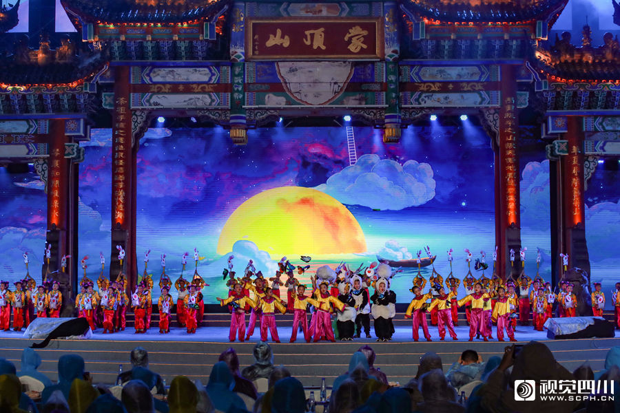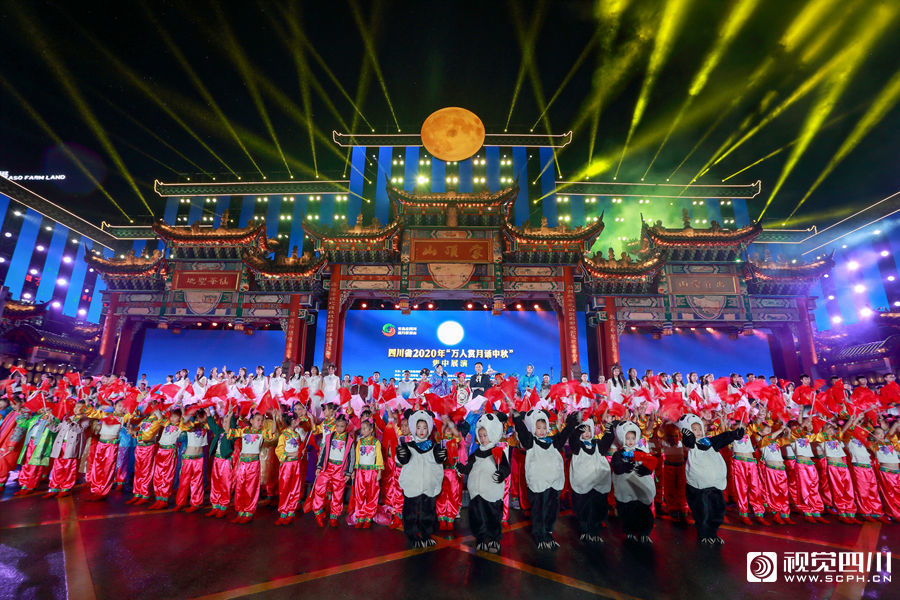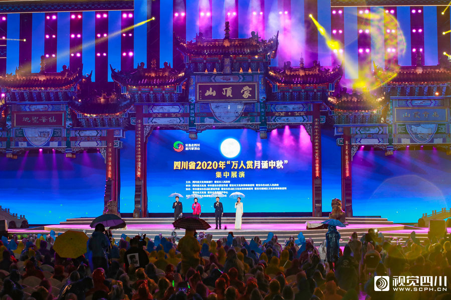 9月28日,四川省举行2020年“万人赏月诵中秋迎国庆”集中展演活动,175个分会场张灯结彩,684场形式多样、内容丰富的群众文化活动陆续开展,浓浓的节日气氛不断升温。图为当晚雅安名山区主会场活动现场。
