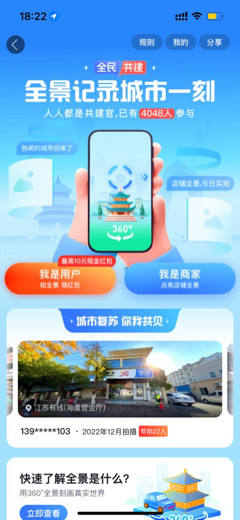 伴随城市活力恢复,百度地图全景再现繁荣景象。通过全景共建拍摄工具,商户们纷纷更新自己的门脸全景图,既可以方便大家更轻松地找到商铺,还可以了解最新的营业情况。不少用户表示,每次看“新鲜”的全景照片都有“惊喜感”。不仅如此,大家还可以自己选择任意地点拍摄全景,用全景照片记录下城市车水马龙、人潮喧闹的景象,在百度地图中搜“拍全景”即可体验,不少地点还设置了奖励金。当拍摄的照片通过审核并采纳后,即可获得共建奖励,人人都是全景共建官。另外,用户近日浏览全景时还领到了红包,可谓惊喜加倍。