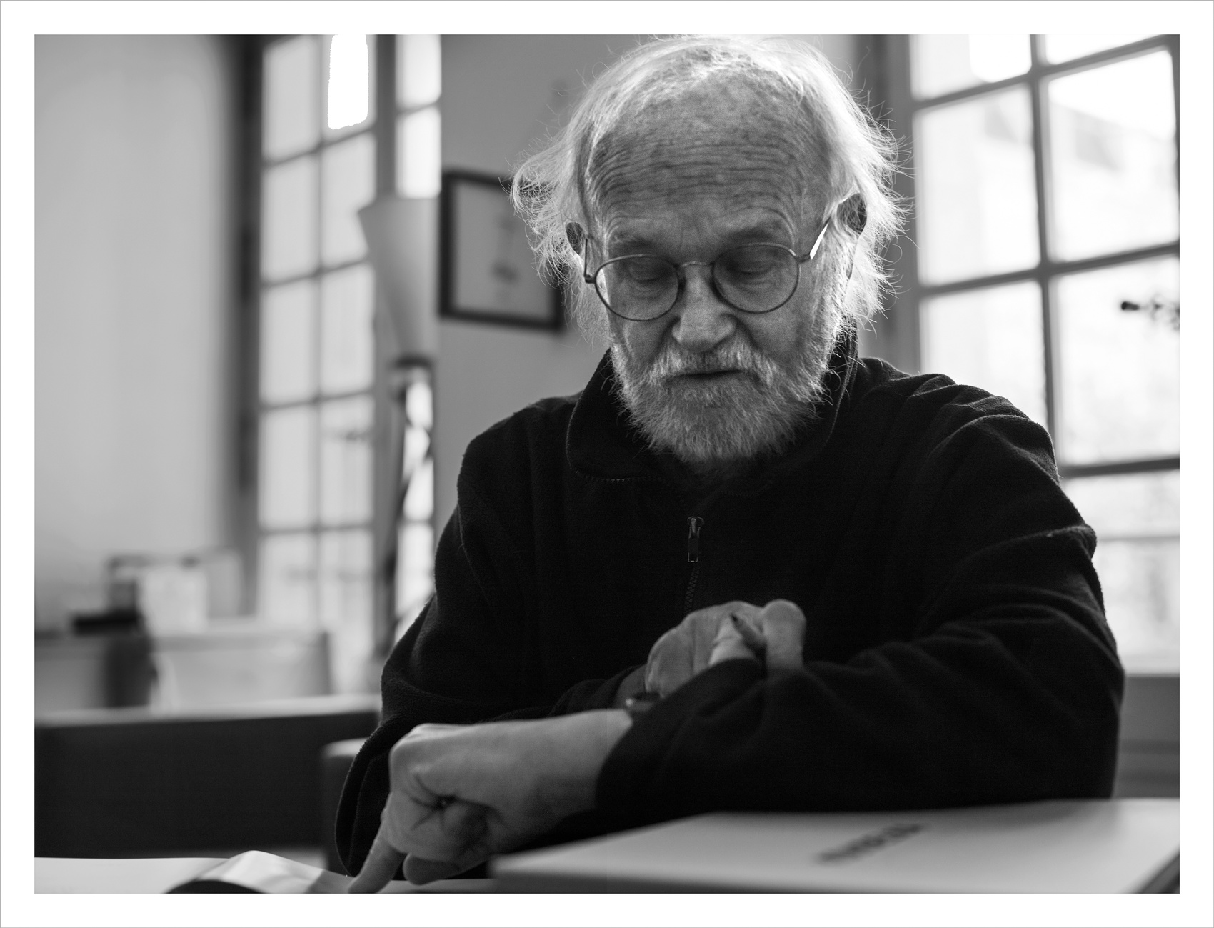 这幅作品的拍摄对象,正是法国著名摄影家贝尔纳·弗孔。在游走全球多个国家,完成若干以自然、人文为主要内容的专题创作后,从2015年开始,钟维兴启动了世界摄影大师肖像的拍摄计划,迄今已经为近百位摄影名家留影。
