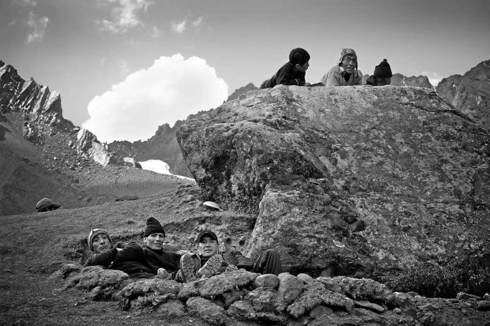 而在秘鲁,钟维兴刻意避开开发成熟、游人如织的景点,专程前往一处偏僻的山区探访当地的特殊节日。3个小时“筛糠”一般的汽车之旅,在马背上颠簸了同样的时间,到达山脚后大家又扛着器材步行上山……尽管路途艰辛,现场却让他倍感兴奋:来自秘鲁库斯科城以南所有地区,甚至智利、玻利维亚的朝圣者汇聚于此,庆祝、朝拜、歌舞和即兴戏剧演出随处可见,仪式最终以从峰顶带回冰雪而告终。