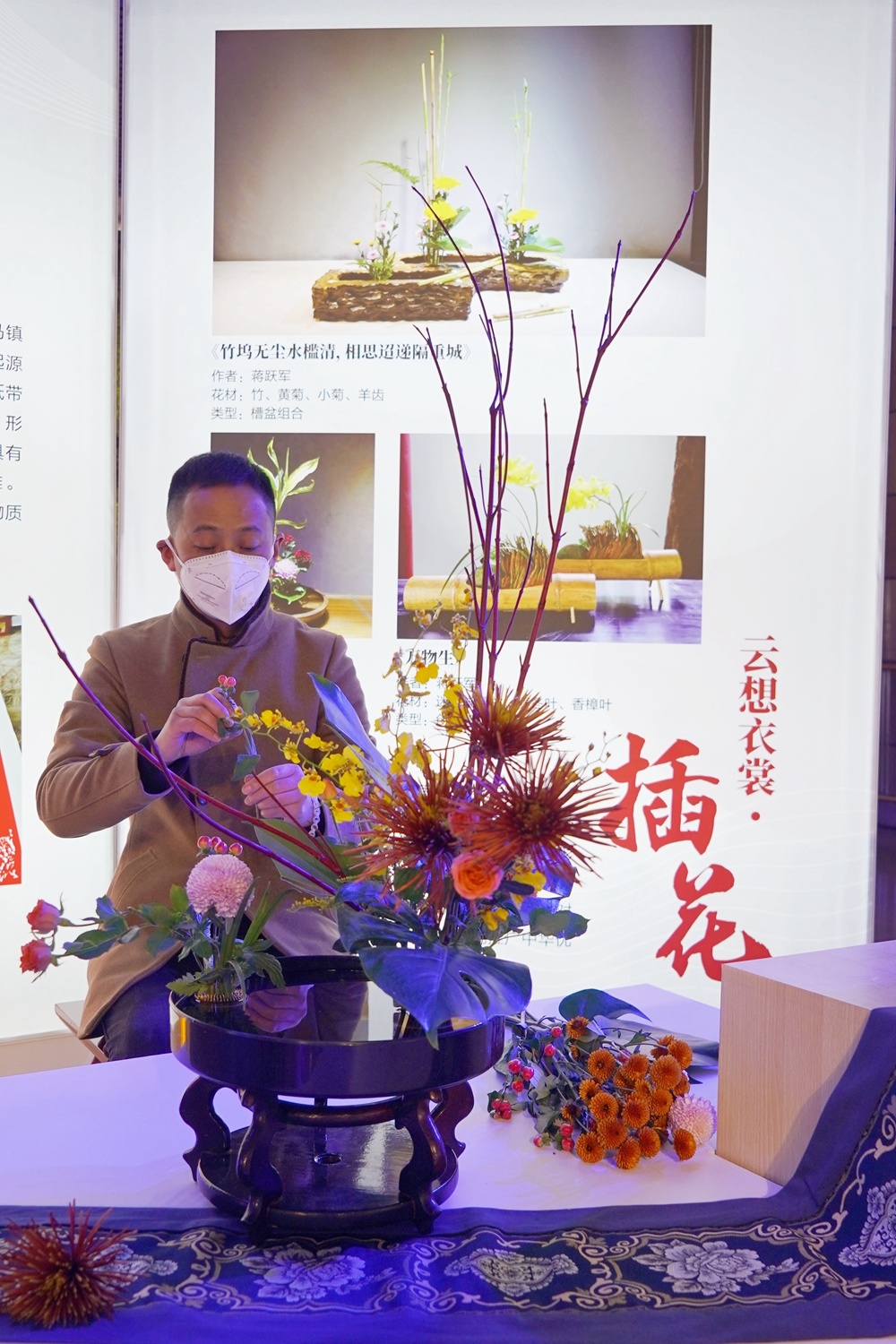 成都农业科技职业学院副教授,成都市花艺技能大师工作室领办人 蒋跃军现场插花展示