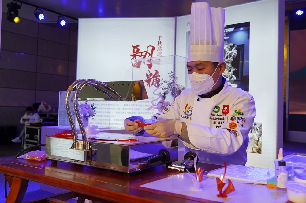 四川旅游学院西点教师、硕士研究生、讲师朱镇华现场翻糖展示