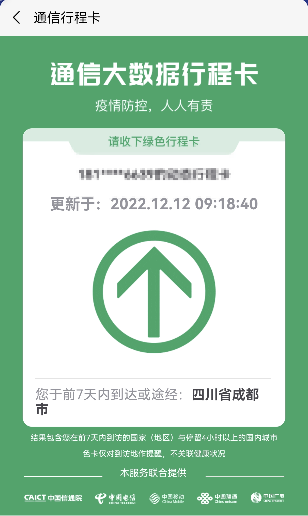 12月13日0时起,“通信行程卡” 服务将正式下线。12月12日晚间,有网友发现四川天府健康通内的“通信行程卡”入口已经下架。