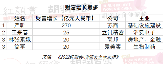 榜单显示,财富增长最多的是苏商39岁的严昕,增长了270亿元。