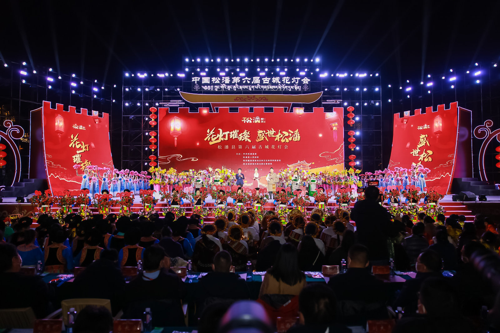 松潘县古城花灯会久负盛名,自2016年开始,至今已举办六届,让越来越多的人领略到了松潘花灯的精美绝伦,同时也成为了当地的一张群众文化活动名片。从万名各族群众齐跳花灯舞,到在传统花灯中融入光影元素,如今传统花灯与现代科技碰撞出别样盛景,传递出松潘厚重的历史韵味,彰显着多姿的群众文化风彩。