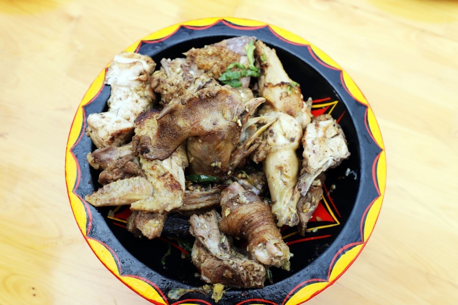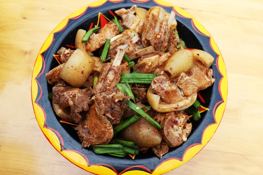 坨坨肉堪称彝族菜肴的“头牌”,也是代表,是峨边彝族人逢年过节及招待贵客的招牌菜。除此之外,坨坨鸡、烤乳猪、烤全羊......彝族美食制作过程简单,讲究原汁原味,其饮食方法和制作方法具有十分鲜明的民族风格和地方特点。