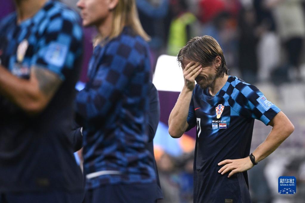 12月13日,克罗地亚队球员莫德里奇(右)在比赛后。新华社记者 李尕 摄