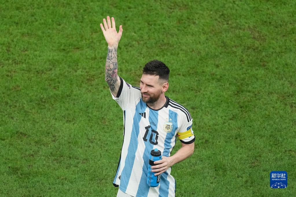 12月13日,阿根廷队球员梅西在比赛后向观众致意。新华社记者 潘昱龙 摄