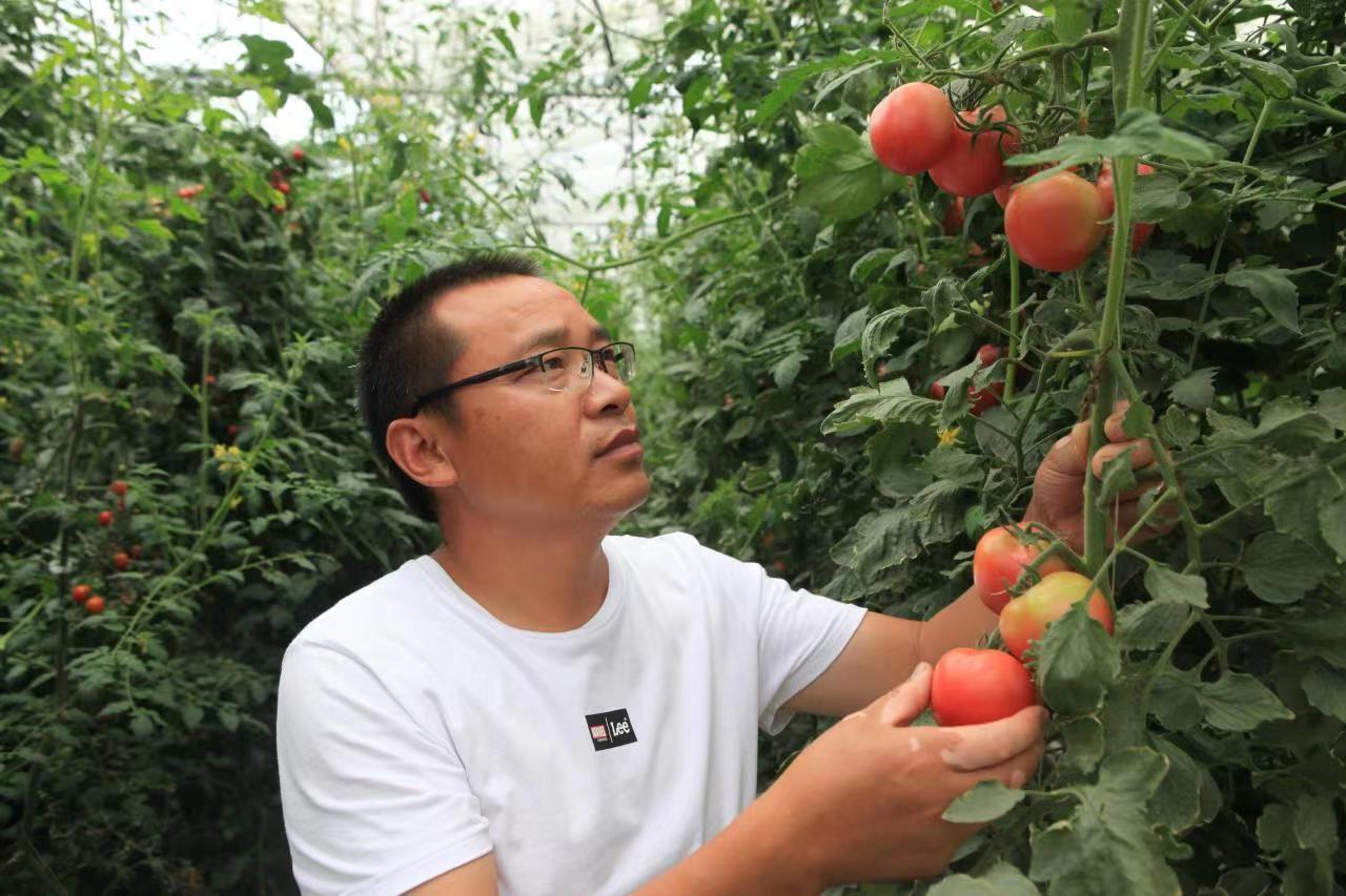 “返乡创业明星”黄达安在大棚内工作