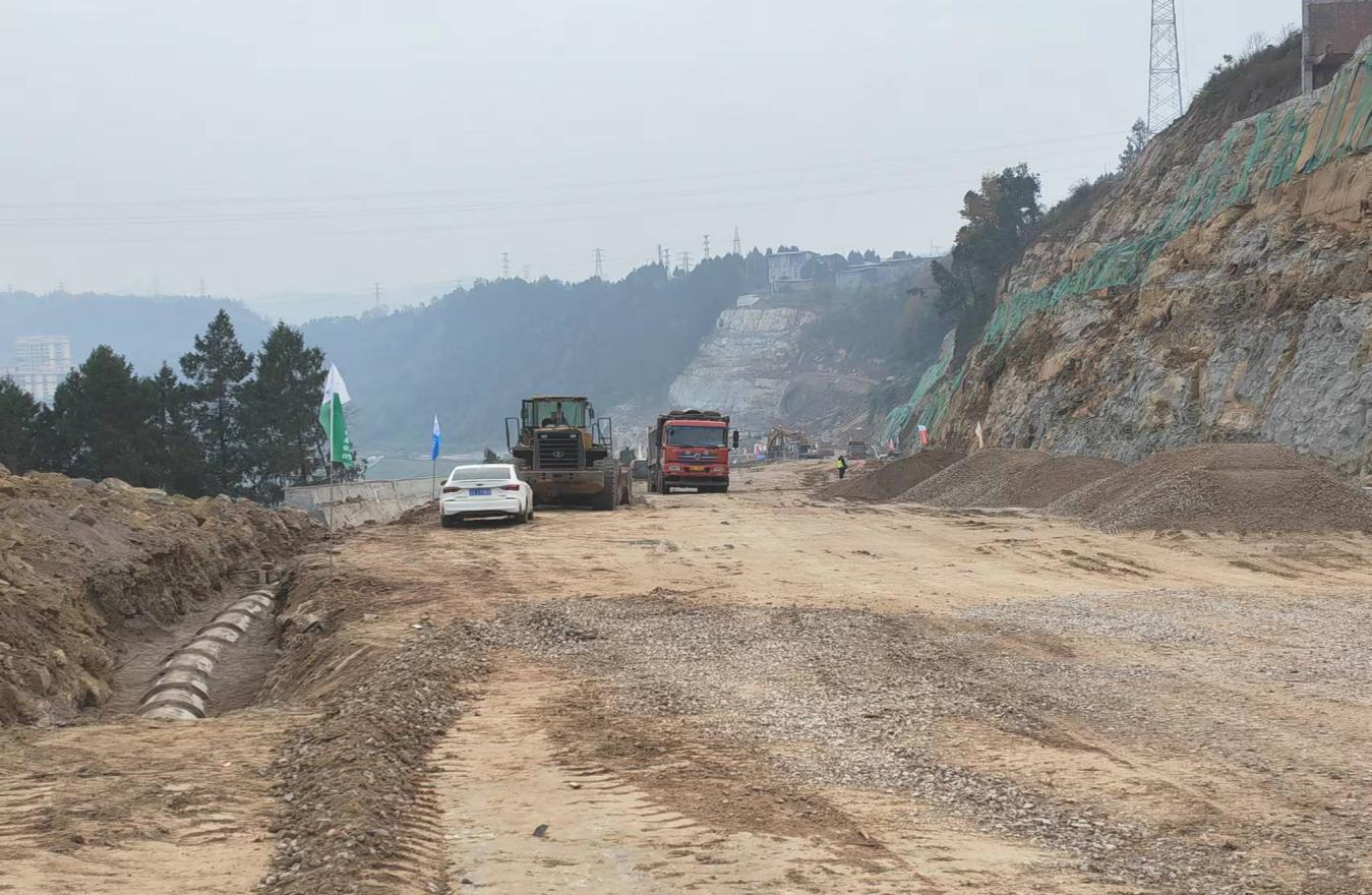 据介绍,现在最大的难点是位于许家岭连接主城方向的高边坡路基开挖工程。该工程路堑开挖面为巨大山体岩石,开挖高度60多米,路基边坡上方是农户居住区,下方是石油管道,再加上路基高度大,作业面小,工程进展比较缓慢。“为确保房屋及管线设施安全我们只能采取静态爆破+浅孔爆破方式进行,逐层逐段小方量开挖,预计春节前达到通车条件。”