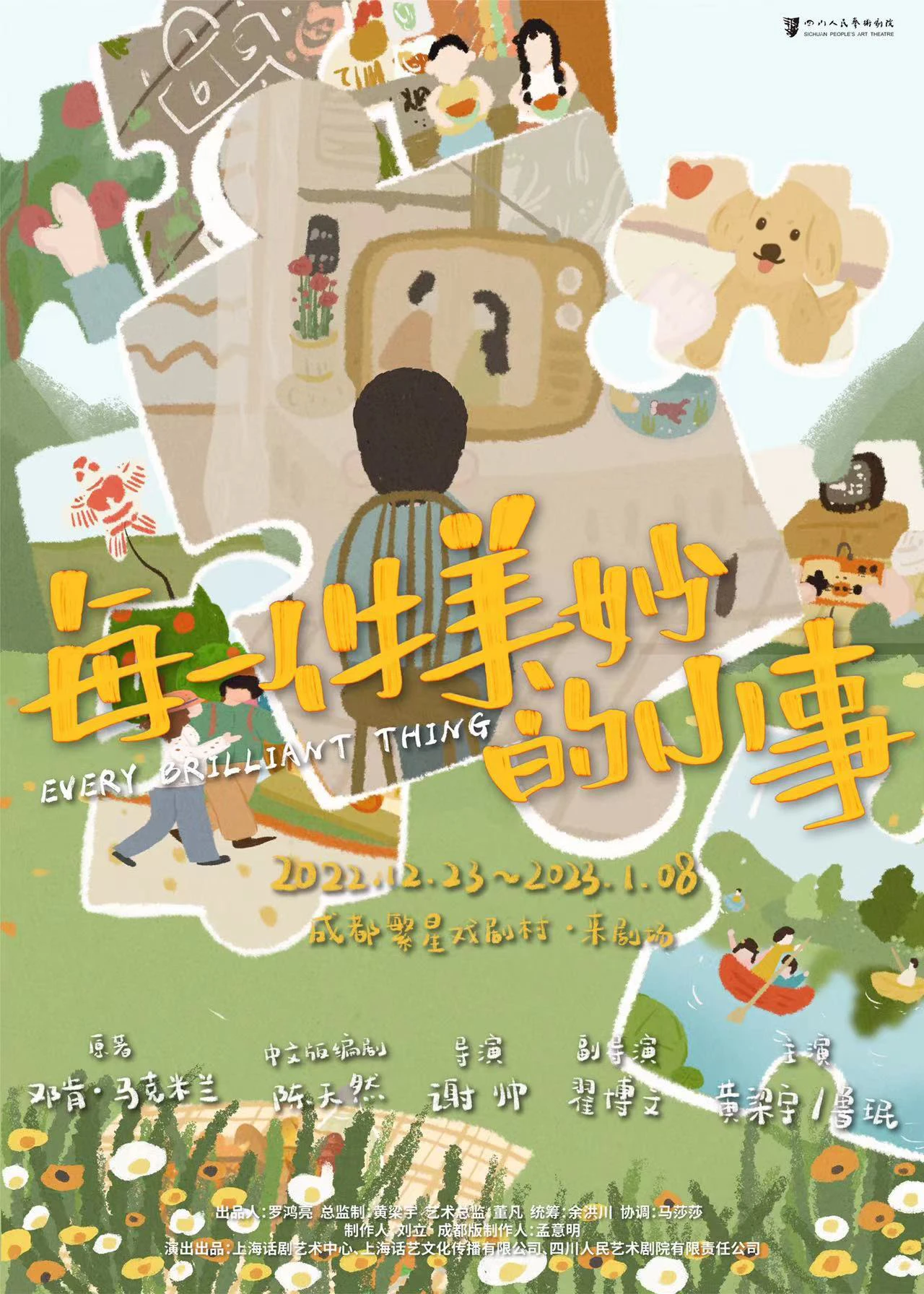 《每一件美妙的小事》改编自英国编剧邓肯·马克米兰的作品,该剧讲述了一位母亲患抑郁症的普通人,拥有看似平凡的家庭、简单的工作,也从来没有做过惊天动地的事。他有一张清单,上面列举了每一件美好的小事.....“我记录下它们,因为我需要它们,这个故事将从我的童年开始说起”。《每一件美妙的小事》自创作演出以来,先后被英国各大主流媒体给予了高度的好评与推荐。