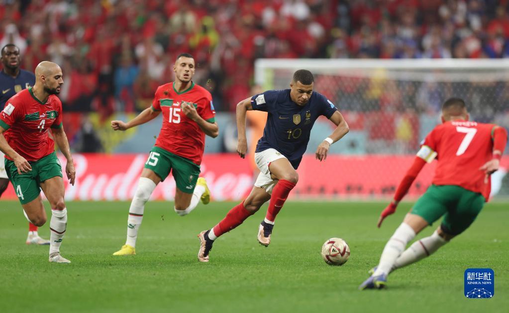 12月14日,法国队球员姆巴佩(右二)在比赛中进攻。新华社记者 潘昱龙 摄